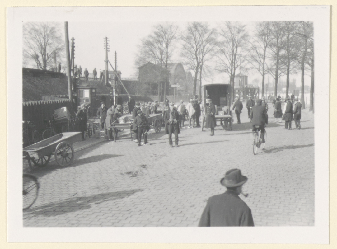 - arbeiders / werklieden fietsers handkarren spoorbruggen
