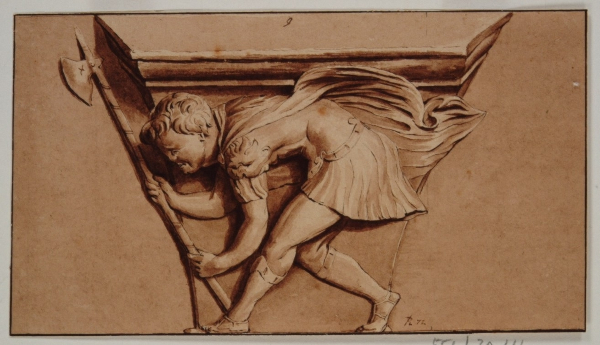 - Misericorde onder een koorstoelzitting in de Grote Kerk voorstellende een man in romeins gewaad met een hellebaard