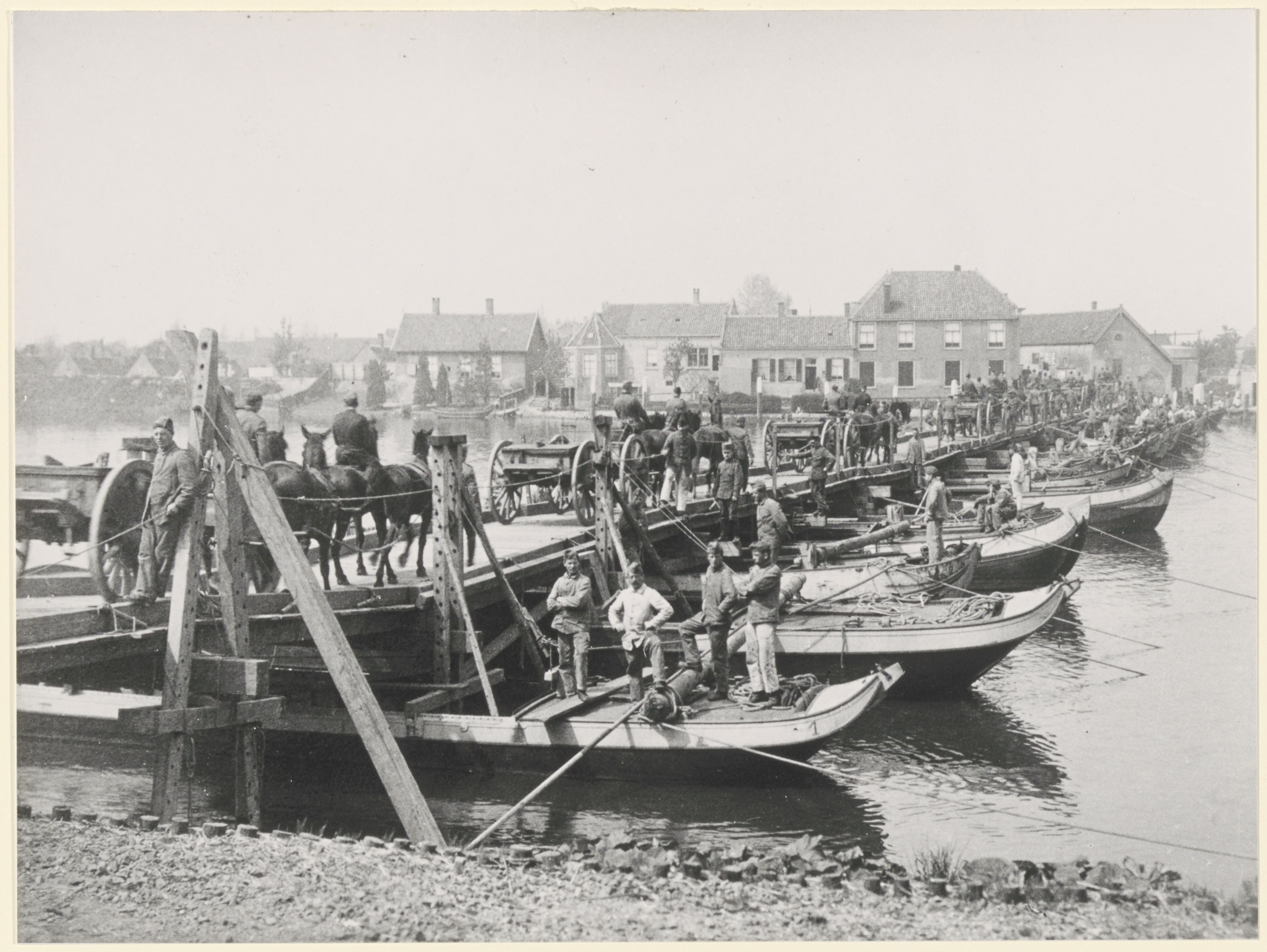 Brugslag door het Korps Pontonniers (Bruggendepot) over de rivieren voor en nabij …
