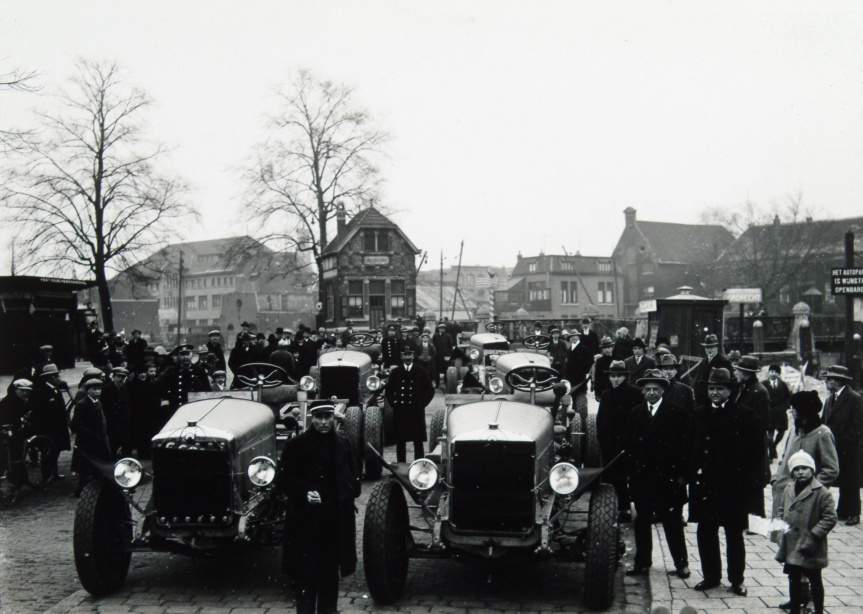 - Oldtimers, opgesteld aan het Blauwpoortsplein bij de Engelenburgerbrug, trekken veel bekijks. In de achtergrond de huizen aan de Houttuinen. het grote gebouw links is het R.K. Ziekenhuis.