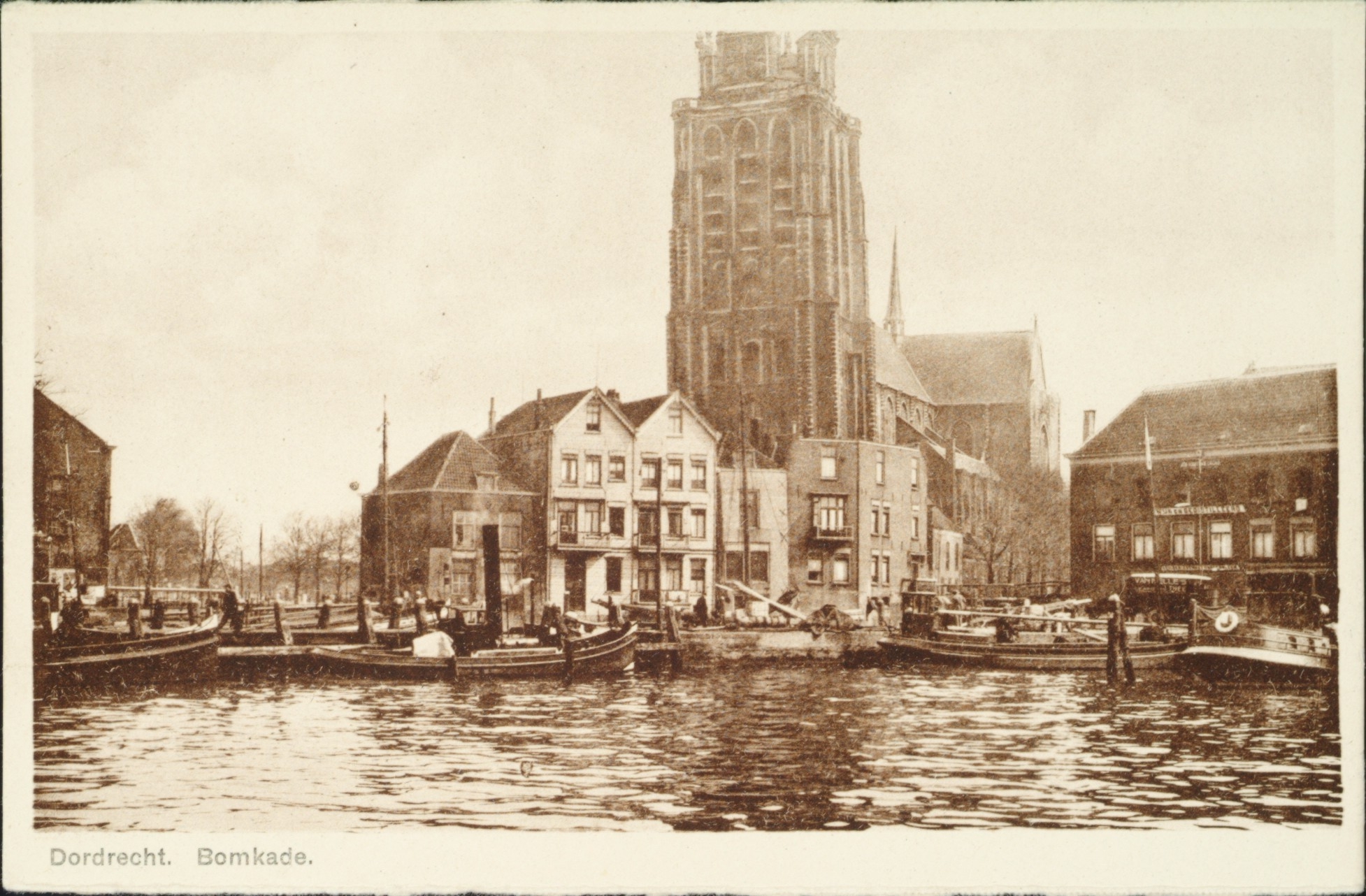 - Bomhaven en Bomkade (rechts), gezien richting Korte Geldersekade en Grote Kerk.