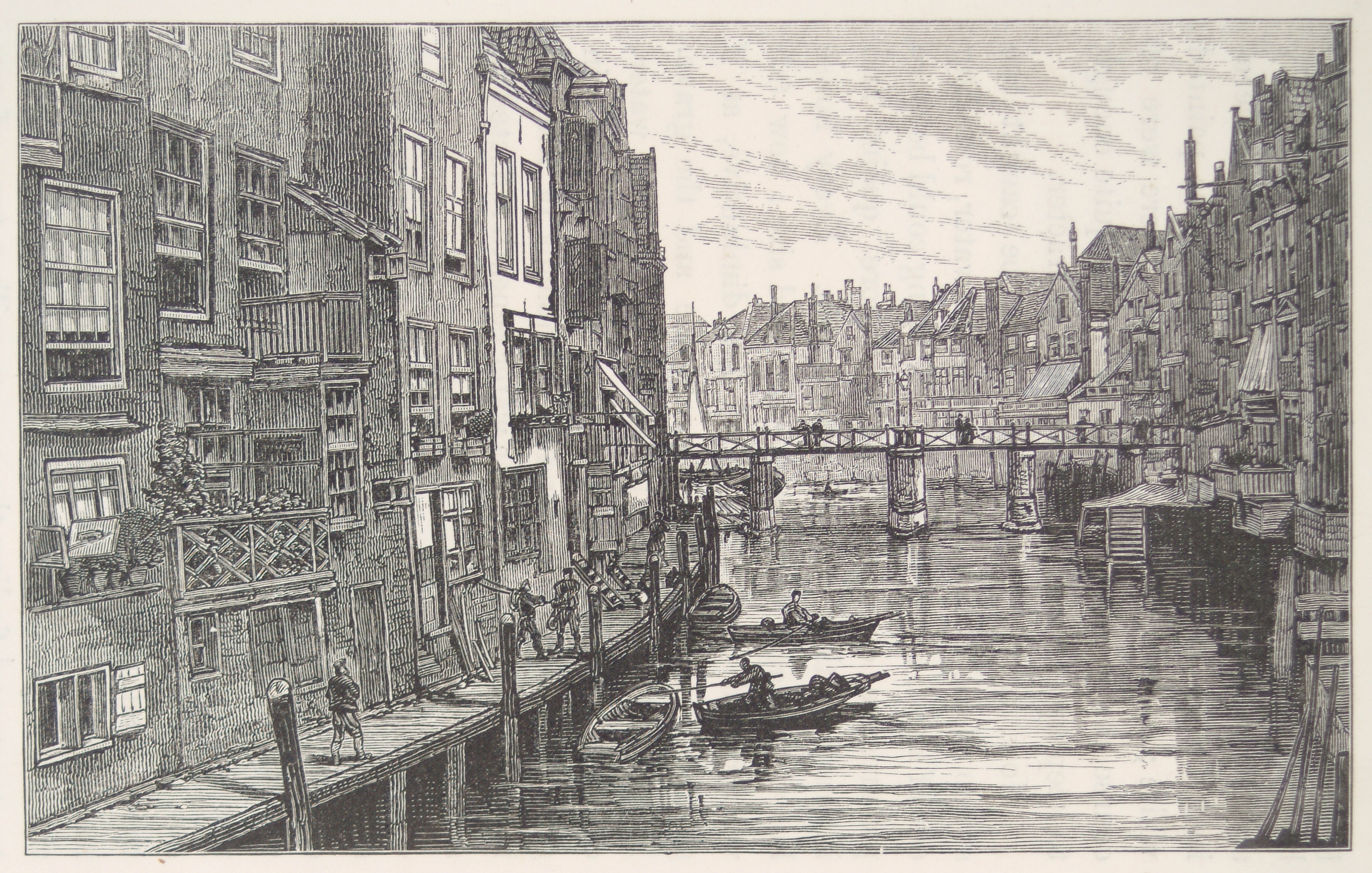 - Gezicht vanaf het Scheffersplein op de Voorstraatshaven en de Wijnbrug.