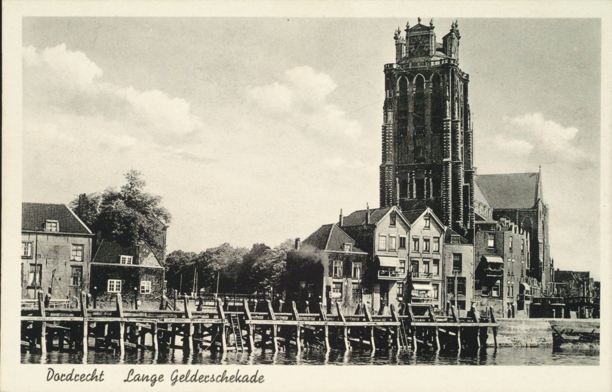 - Bomhaven, gezien richting Korte Geldersekade en Grote Kerk. Links de Mazelaarsstraat.