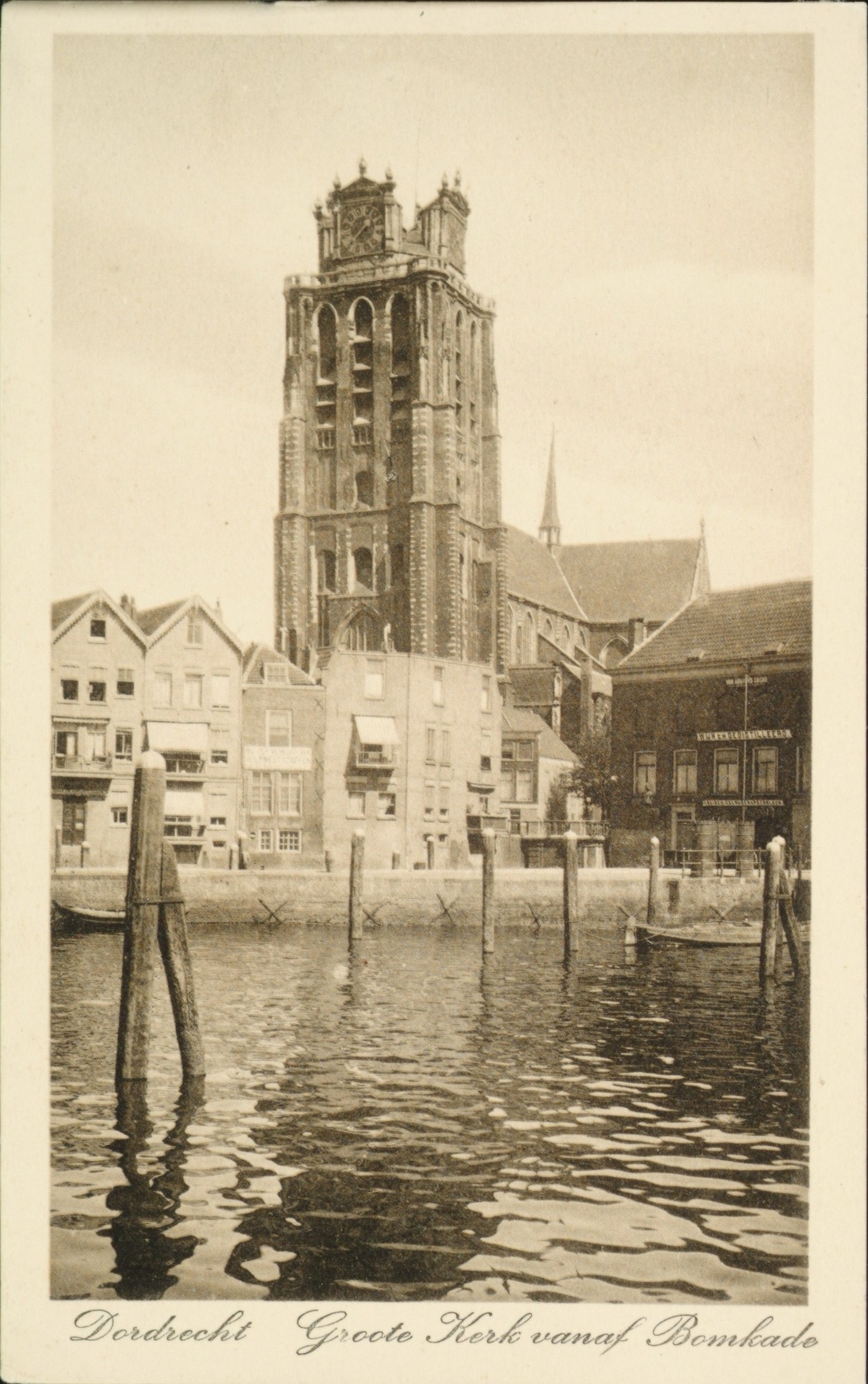 Bomhaven en Bomkade (rechts), gezien richting Korte Geldersekade en Grote Kerk.