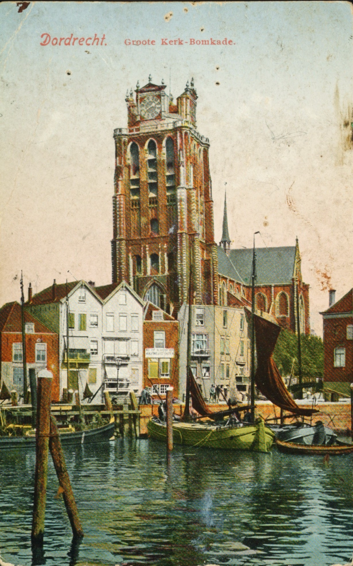 Bomhaven, gezien richting Korte Geldersekade en Grote Kerk.