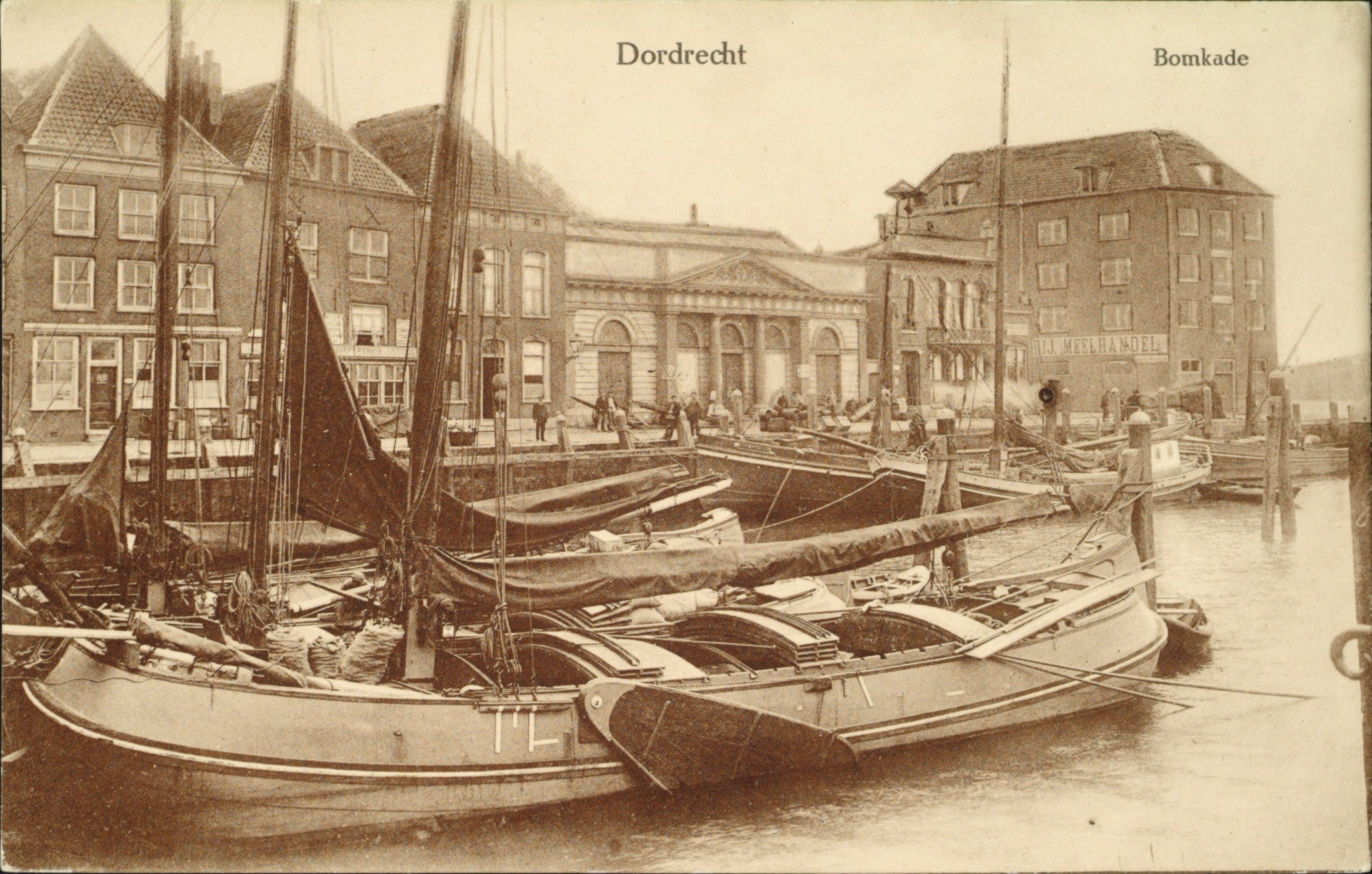 - De Bomkade aan de Bomhaven. Het witte gebouw is de Korenbeurs. Rechts pakhuis Vredenburg van meelhandel De Vrij op de hoek van de Buiten Klakhaven.