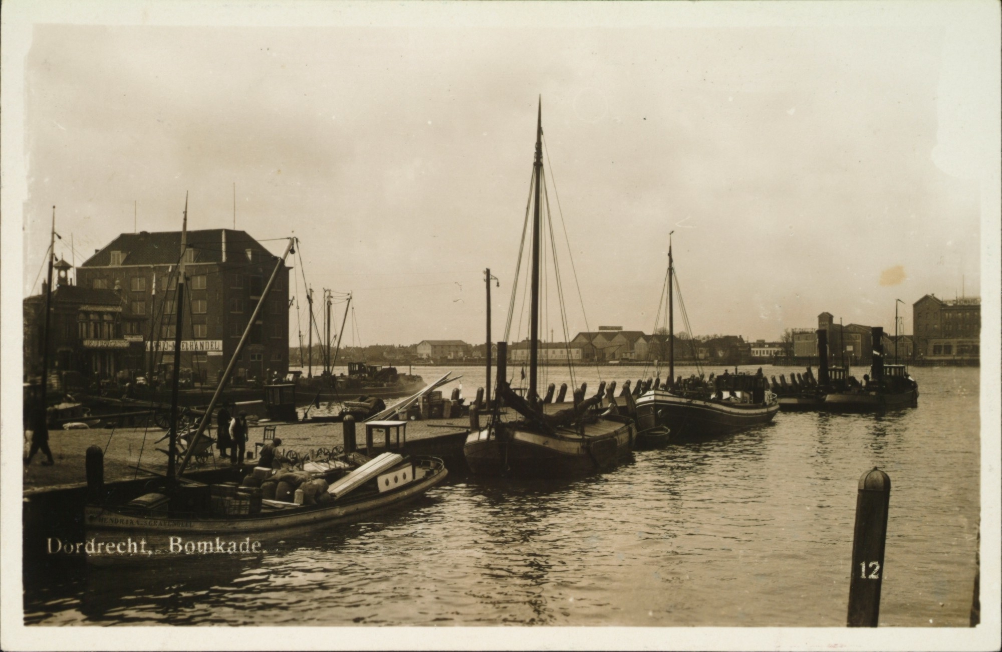 De Leuwehaven en pakhuis Vredenburg op de hoek van de Bomkade en de Buiten Kalkhaven.