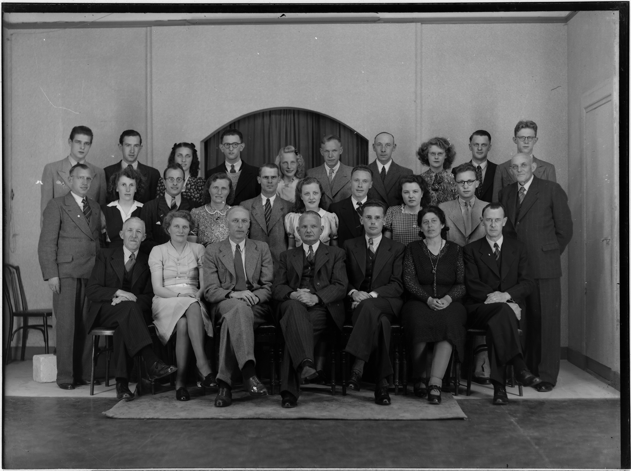 Groepsportret kantoorpersoneel metaalindustrie Penn & Bauduin