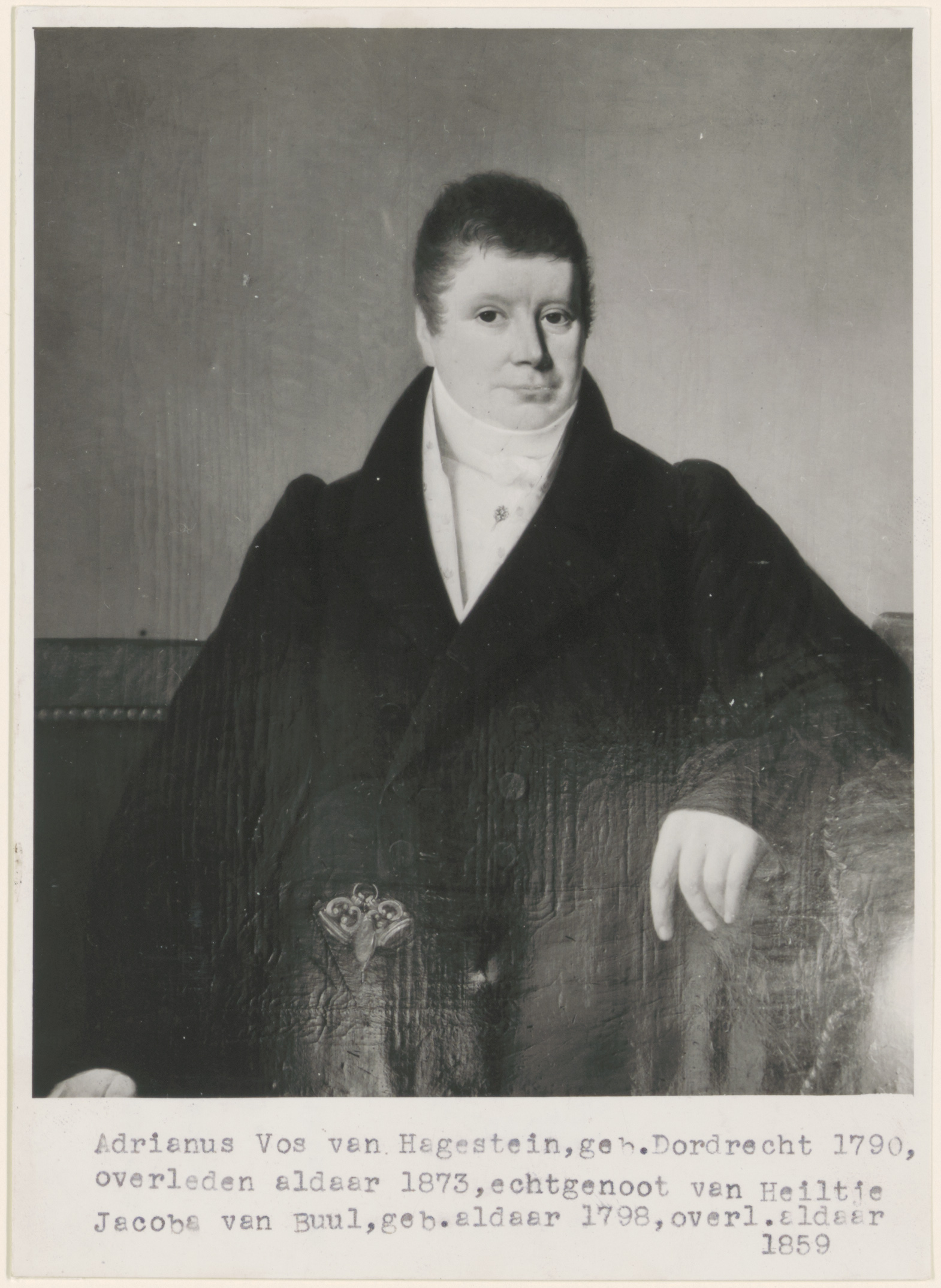 - Adrianus, Vos (Van Hagestein). Geboren te Dordrecht 1790, overleden aldaar 1873. Echtgenoot van Heiltje Jacoba van Buul, geboren aldaar 1798, overleden aldaar 1859.