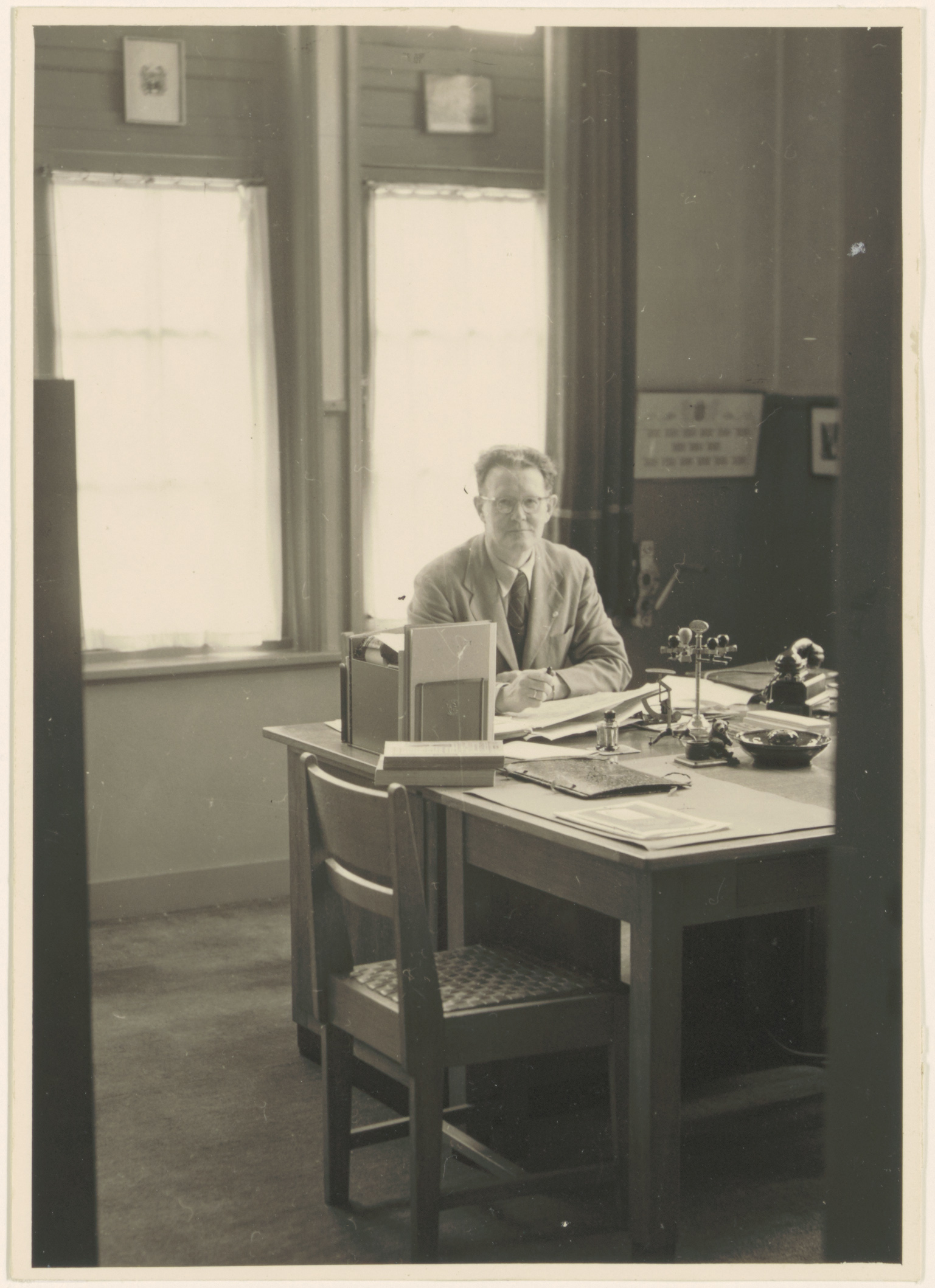 - Dr. Abraham Mulder. In zijn werkkamer op het archief.