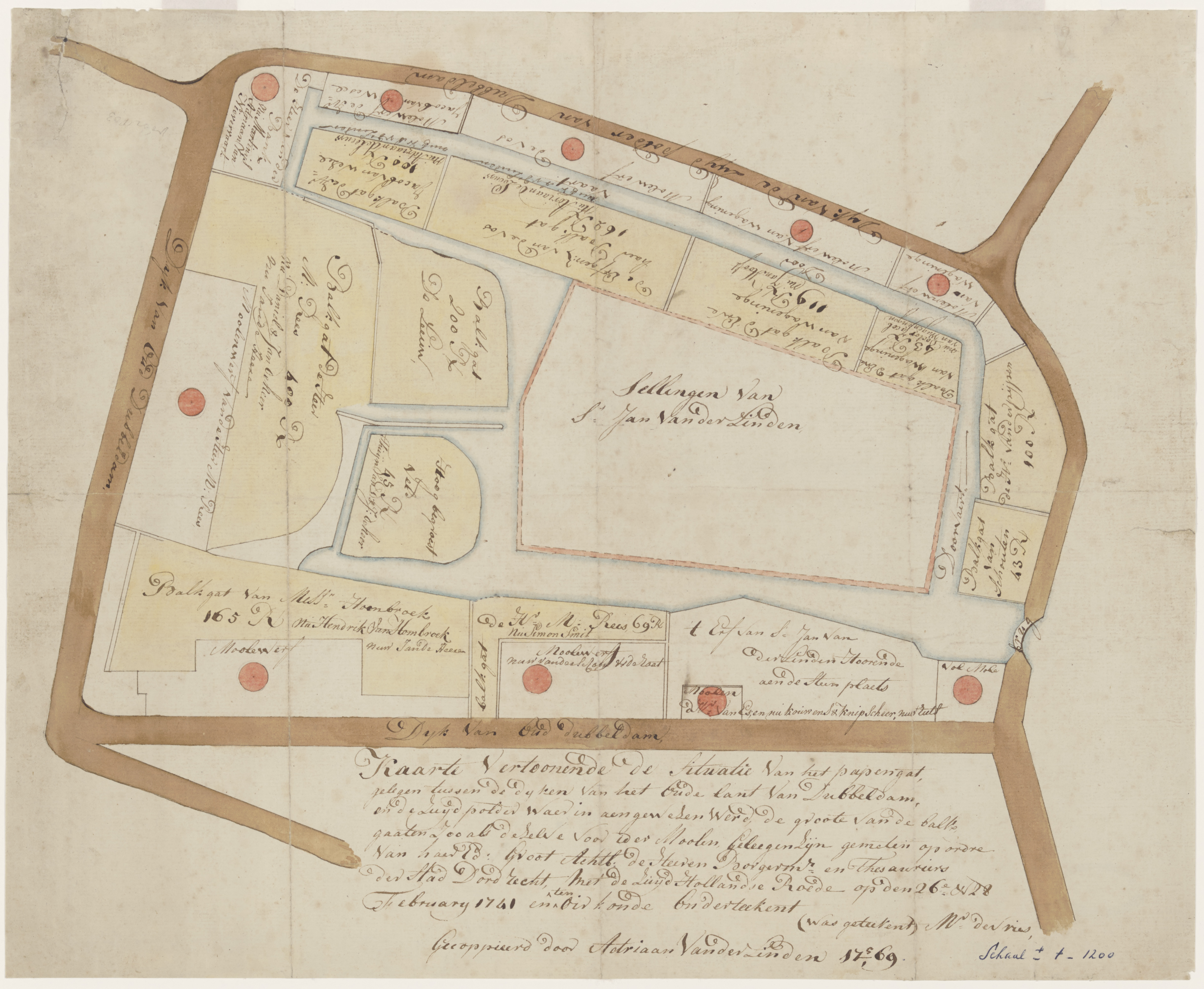 - Kaart van het Papengat, met aanduiding van de ligging van tien molens en de bijbehorende erven, alsmede de balkengaten en de namen van de eigenaren.