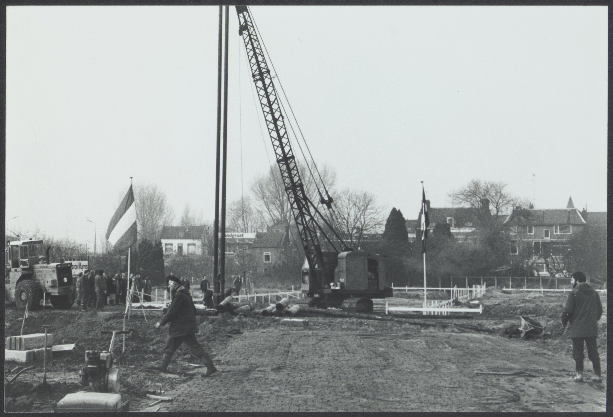 Bouw van Sporthal Wielewaal in 1978 De 1e paal wordt feestelijk de grond in geslagen.