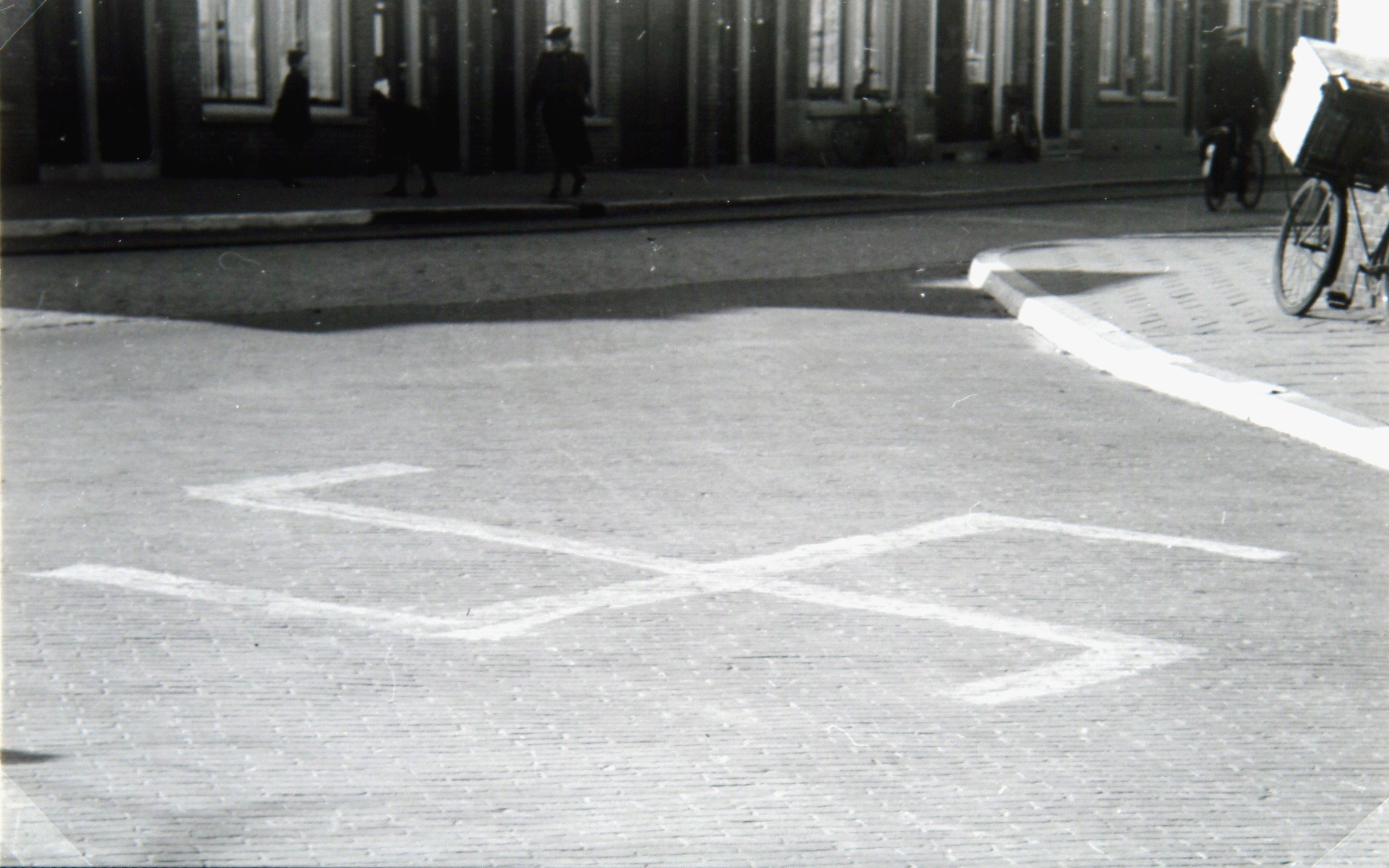 Men zegt dat dit hakenkruis in de meidagen van 1940 in de Lombokstraat bij de hoek …