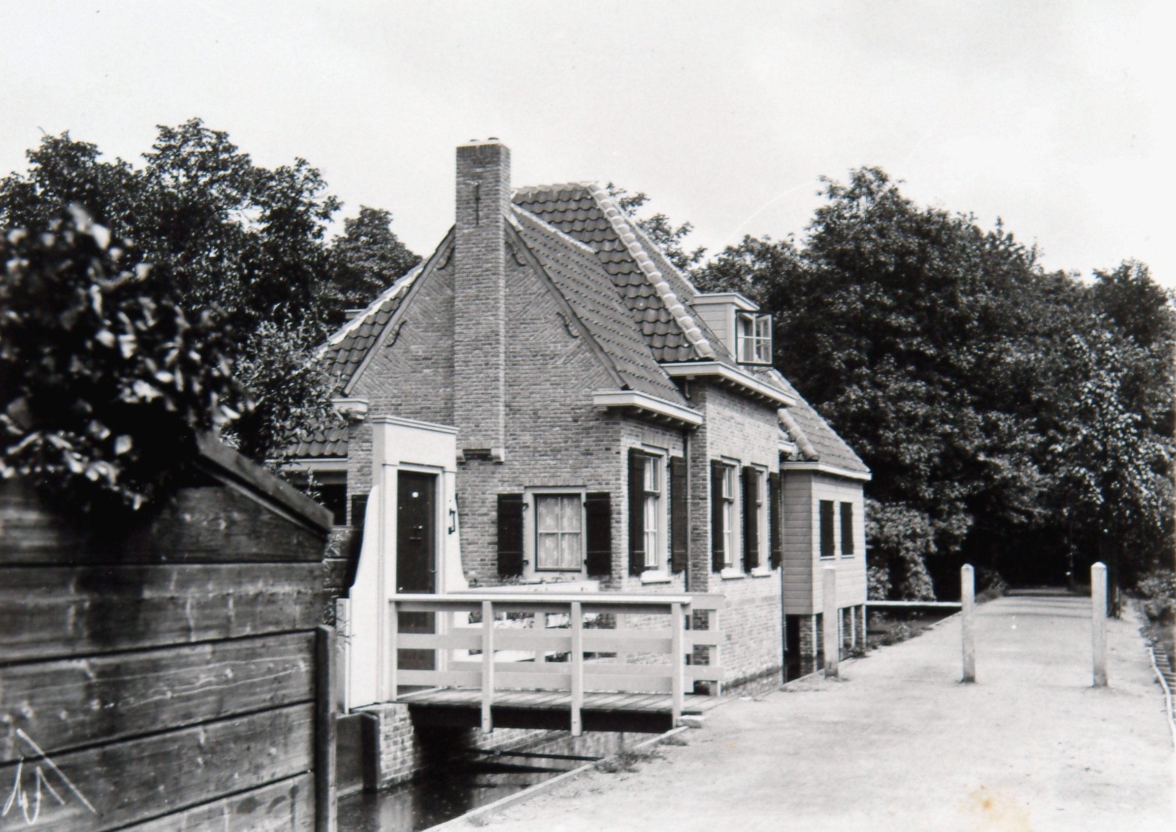 - Gezicht op een pand aan het Berckepad naar het zuiden gezien. Aan het eind van het pad is de ingang van Park Merwestein. De sloot is inmiddels gedempt.