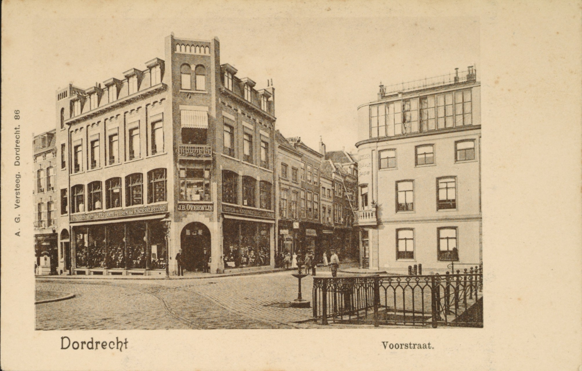 Prominent in het midden de modezaak van J.B. Overwijn en het witte pand rechts was de vestiging van Hameter, fotograaf.