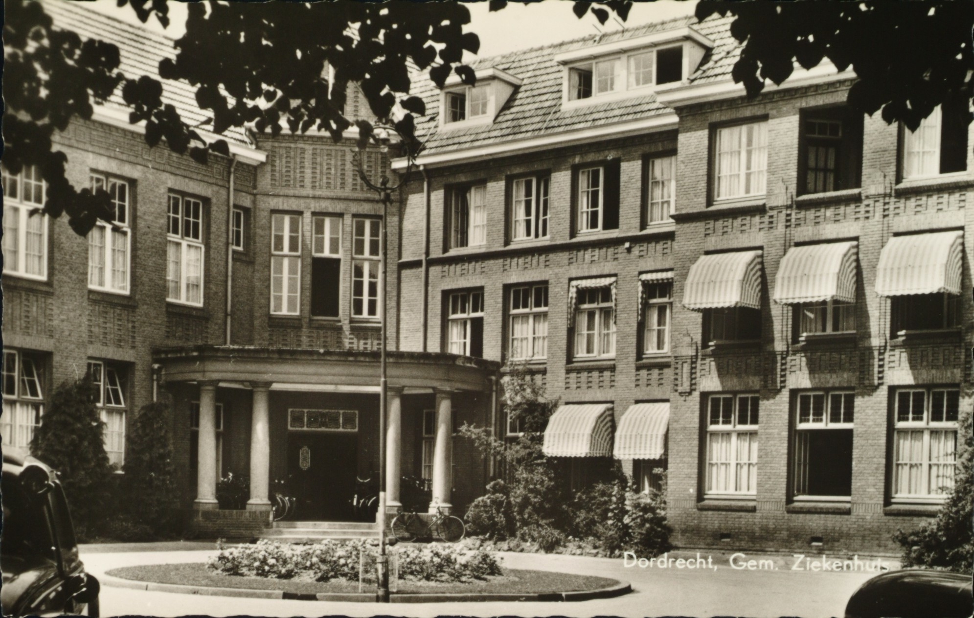 - De hoofdingang van het Gemeenteziekenhuis in de Bankastraat.