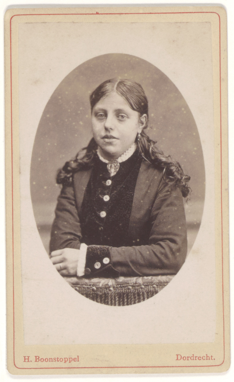 - Portret van een onbekend persoon gemaakt door de Dordtse fotograaf H. Boonstoppel die van 1883 tot 1900 werkzaam was in de Visstraat tegenover het postkantoor.