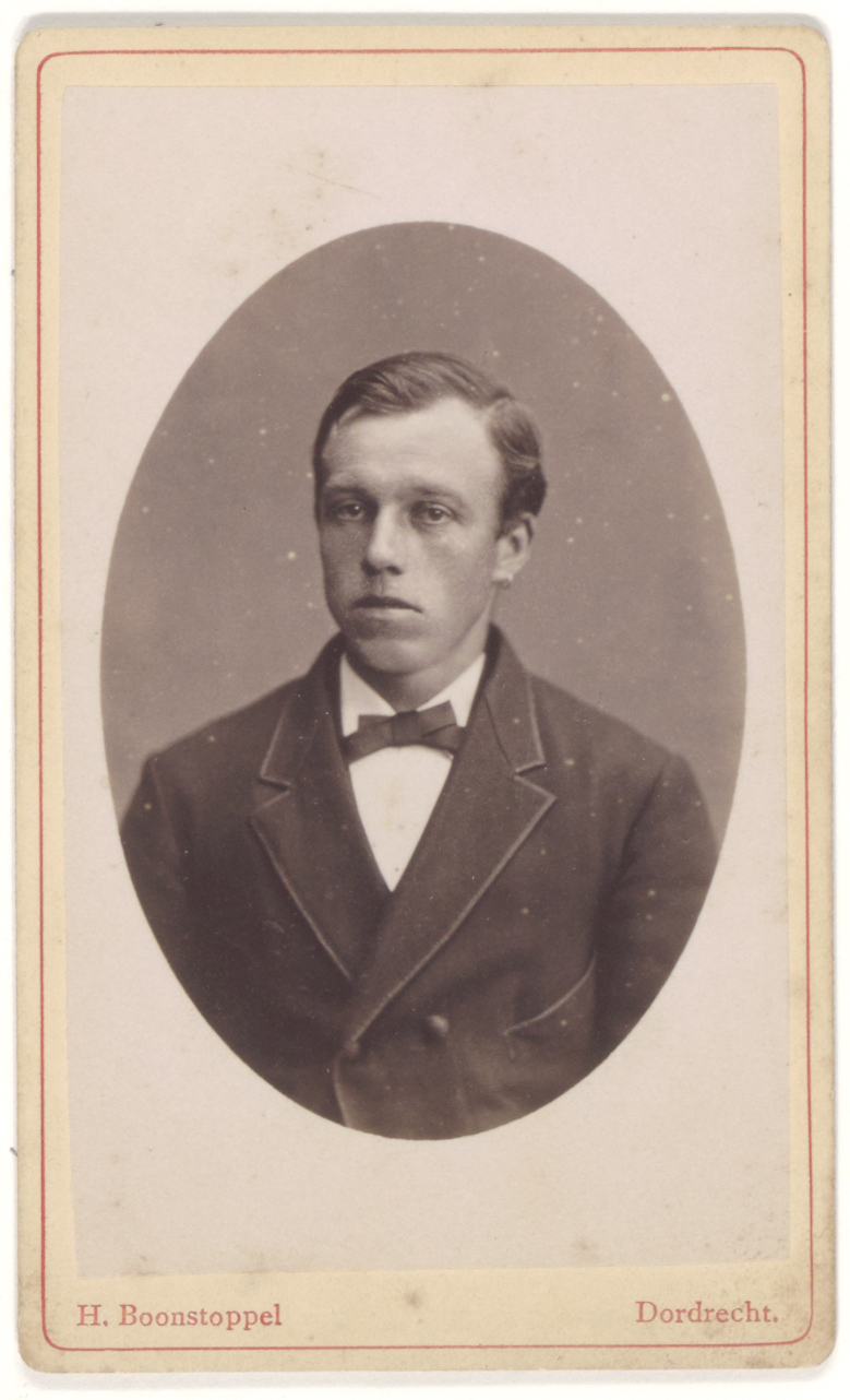 - Portret van een onbekend persoon gemaakt door de Dordtse fotograaf H. Boonstoppel die van 1883 tot 1900 werkzaam was in de Visstraat tegenover het postkantoor.