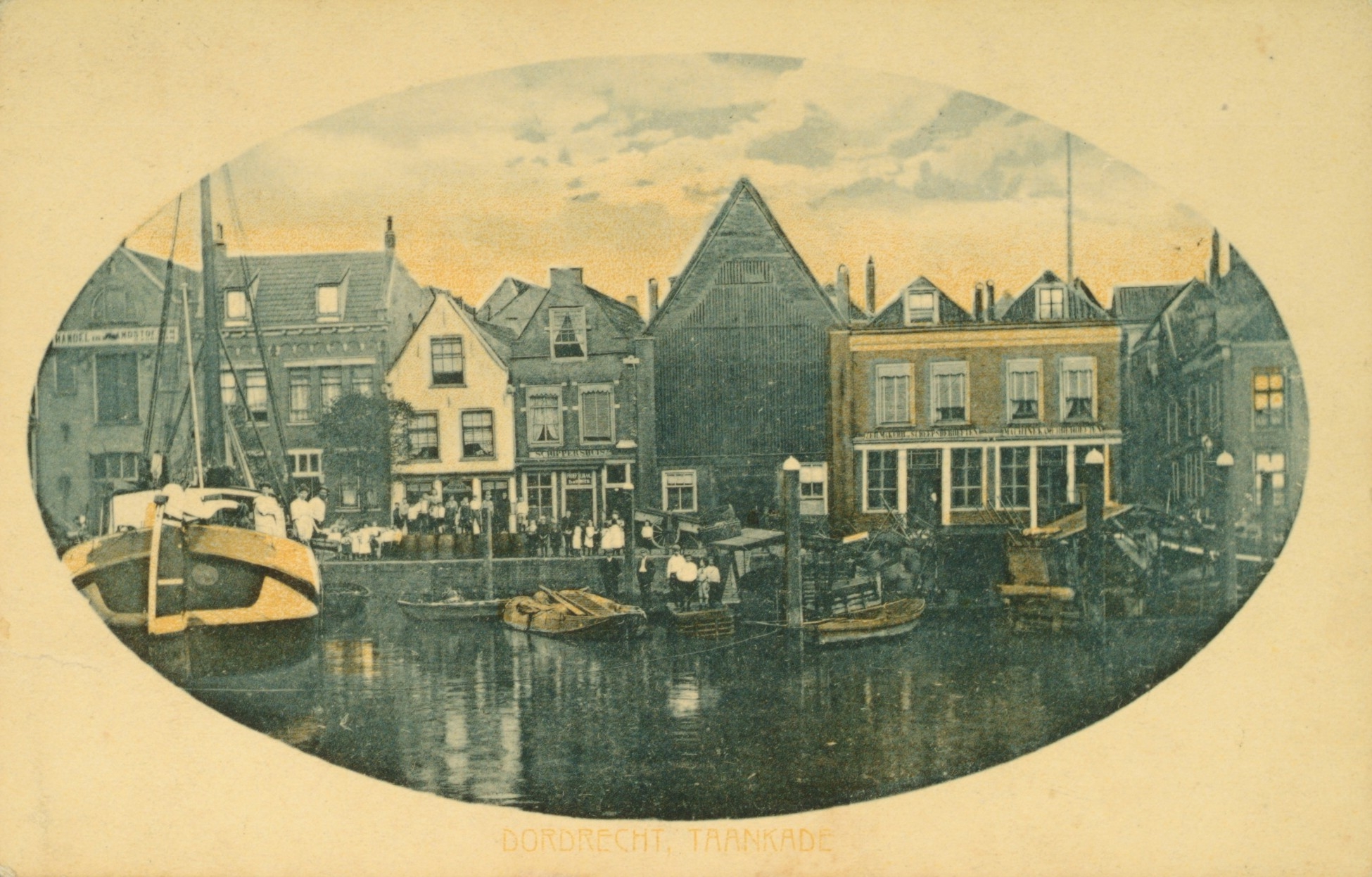 - havens roeiboten schippershuizen voetgangers zeilvaartuigen