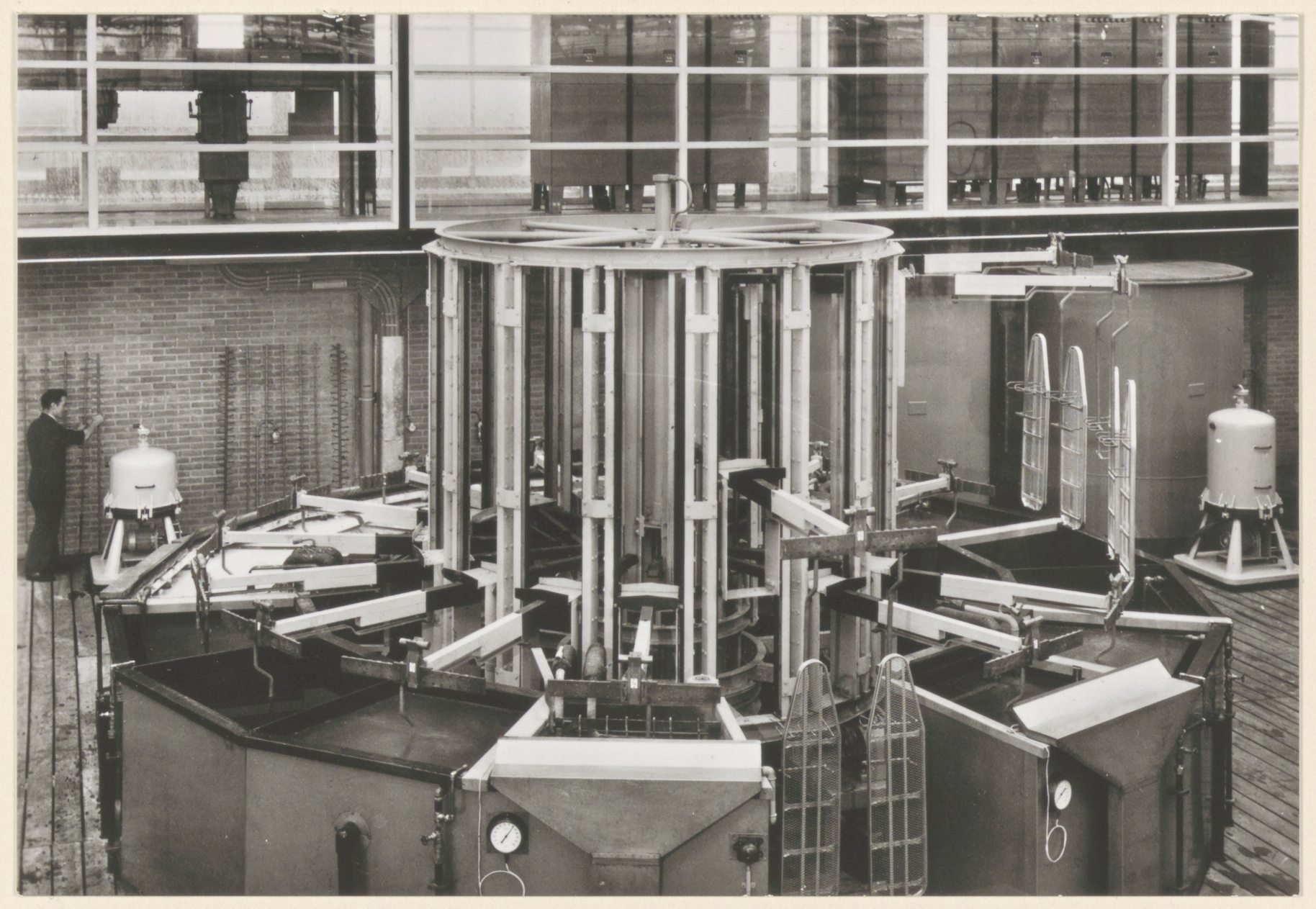 Interieur van Tozindo, de verzinkerij en verchromerij van Tomado aan de Merwedestraat.