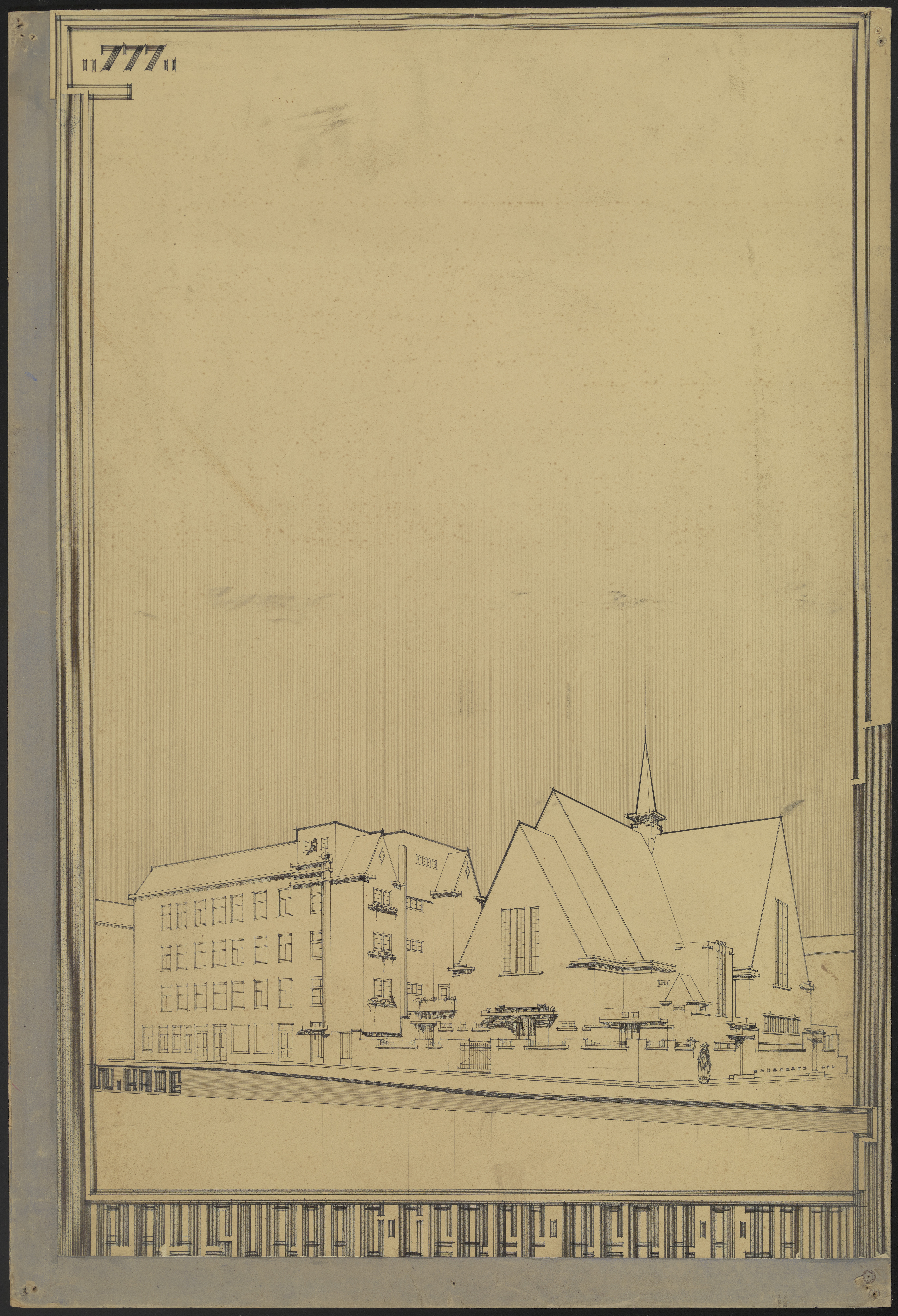 Inzending voor een prijsvraag van de Gereformeerde Kerk te Amsterdam, ontwerp van een kerkgebouw aan de De Wittenkade (1924), niet uitgevoerd.
