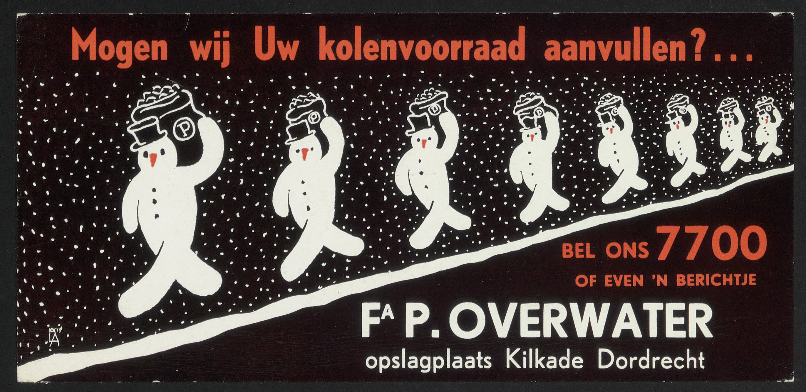 (reclame) Mogen wij Uw kolenvoorraad aanvullen? Fa. P. Overwater, opslagplaats Kilkade Dordrecht, 7700