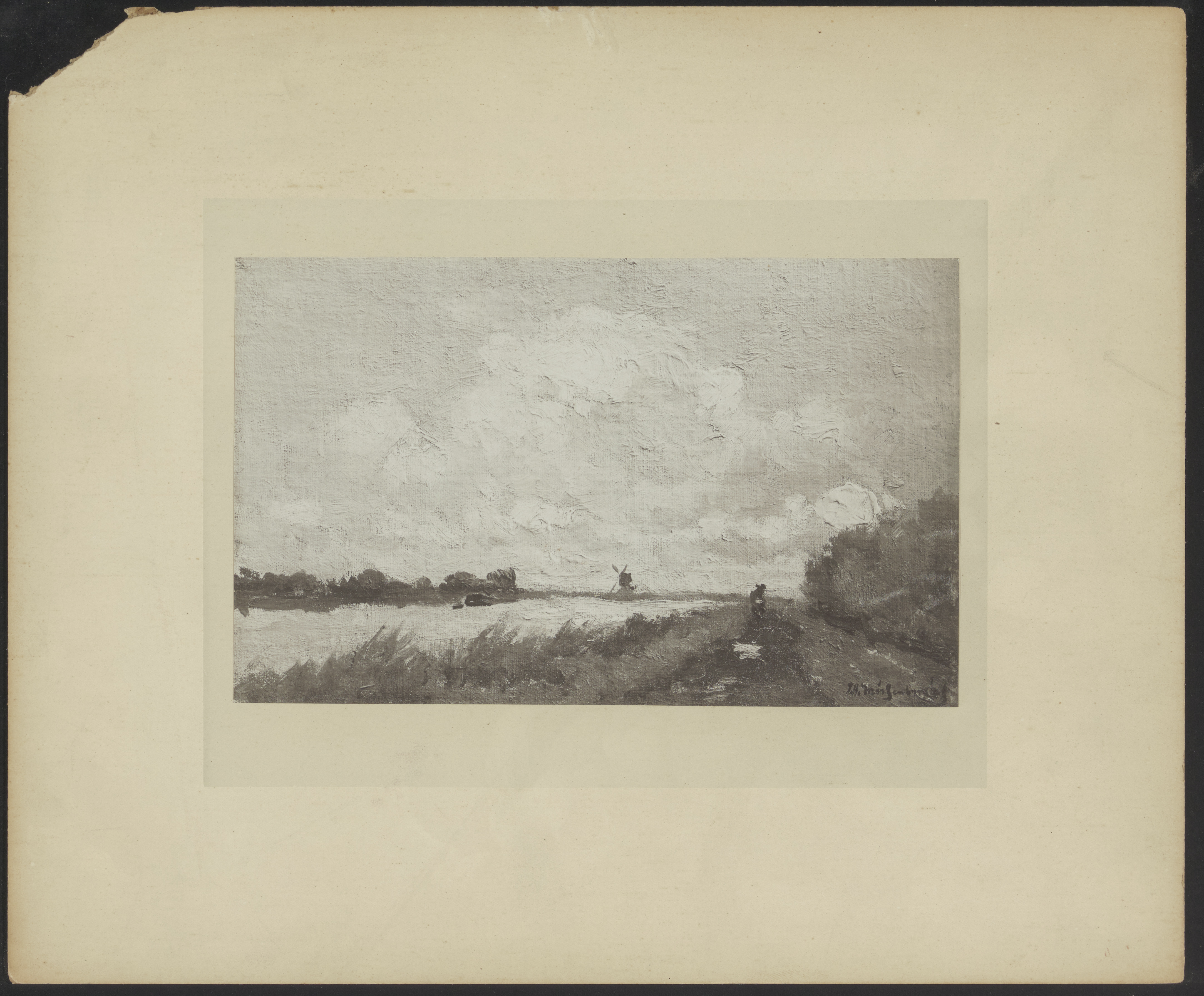 Zwart wit opname van het schilderij ‘Bewolkte lucht boven het vaartje te Noorden’, zonder datering, door Jan Hendrik Weissenbruch (1824-1903). Nu in de collectie van het Dordrechts Museum. https://rkd.nl/explore/images/31140