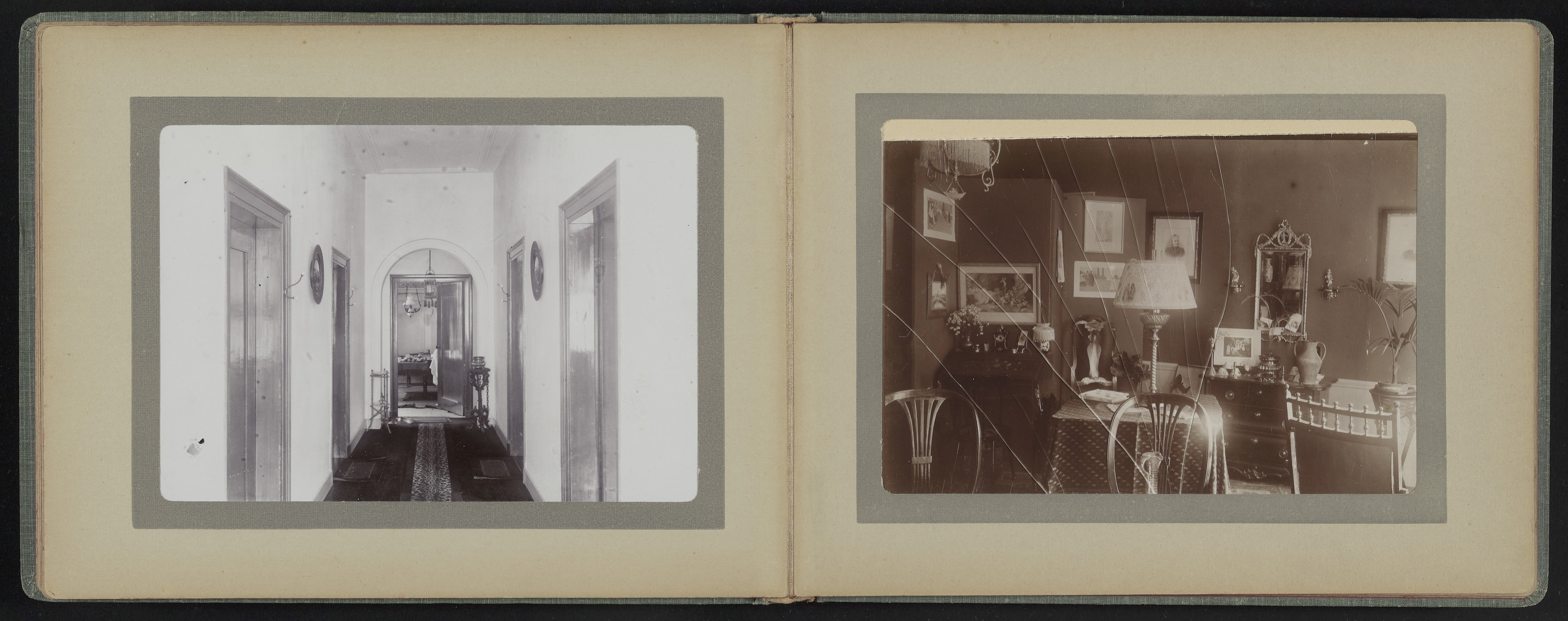 294_6803-001 t/m -013: Herinneringsalbum met binnen en buitenopnames van het woonhuis uit 1682 op de oostelijke hoek Voorstraat-Lombardstraat, bewoond door het gezin van David Antoine Nicolas Vriesendorp (1838-1898) en Maria Coralie van Nievervaart (1844-1928). Volgens -012 was dit huis tevens het sterfhuis van de schilder Albert Cuyp. Gesloopt. Nu staat hier het winkelpand Voorstraat 320.