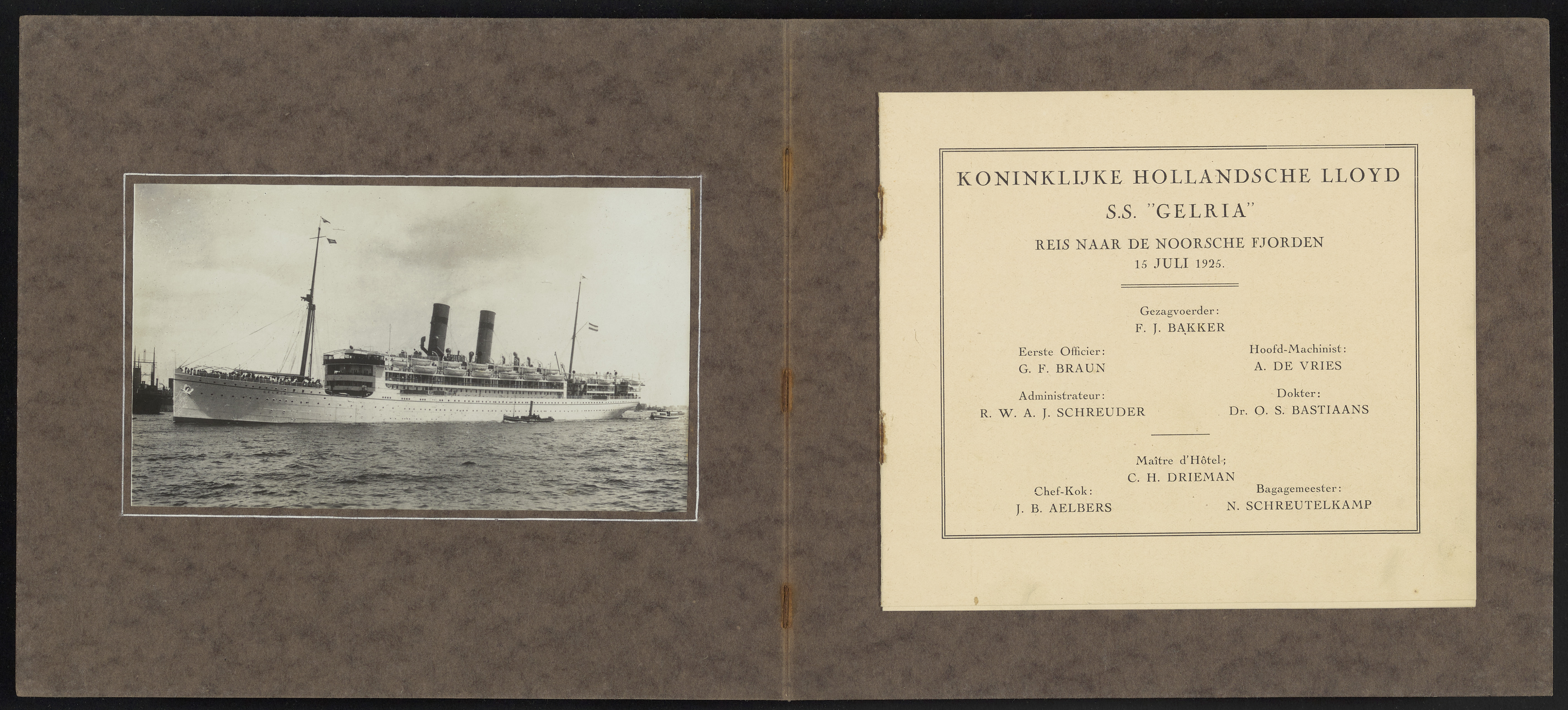 S.S. Gelria van de Koninklijke Hollandsche Lloyd, reis naar de Noorse fjorden, (vanaf) 15 juli 1925.