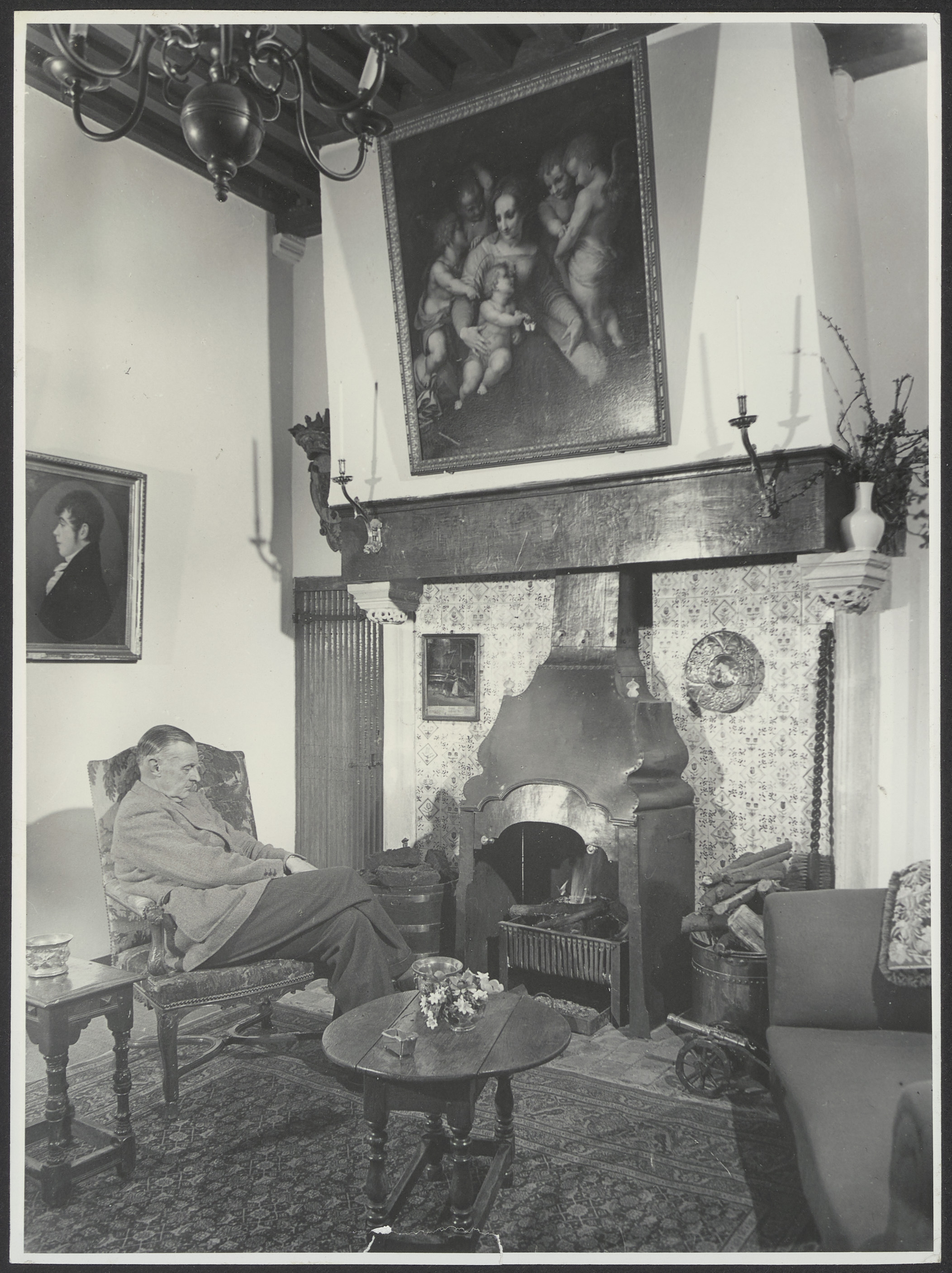 Jacob ‘Jaap’ Vriesendorp van Renesse (1888-1984) voor de haard in Slot Moermond. Zal niet later zijn dan 1955, want toen verkocht hij het.