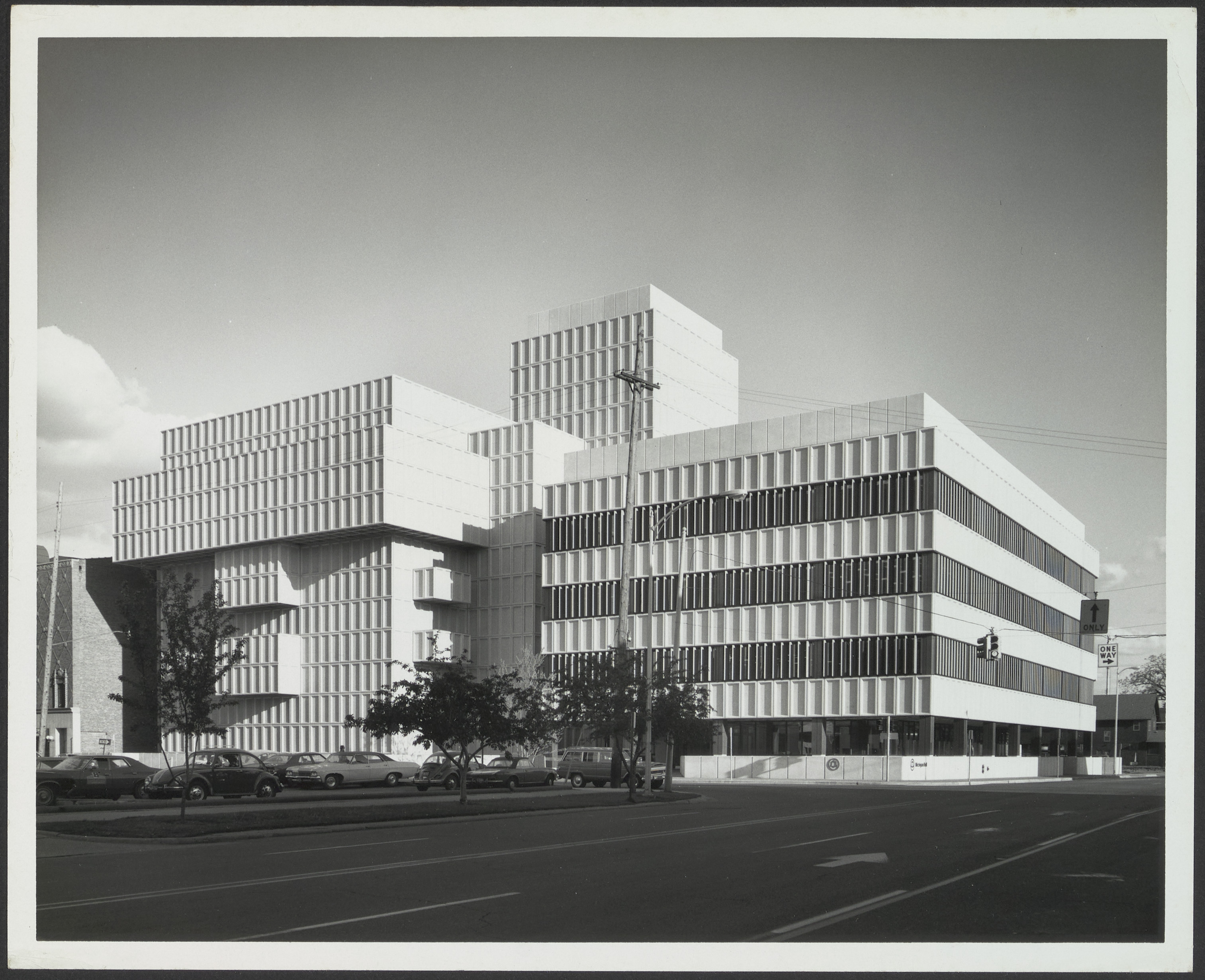 Gebouw van telefoonmaatschappij Michigan Bell aan de South Rose Street op de hoek van …