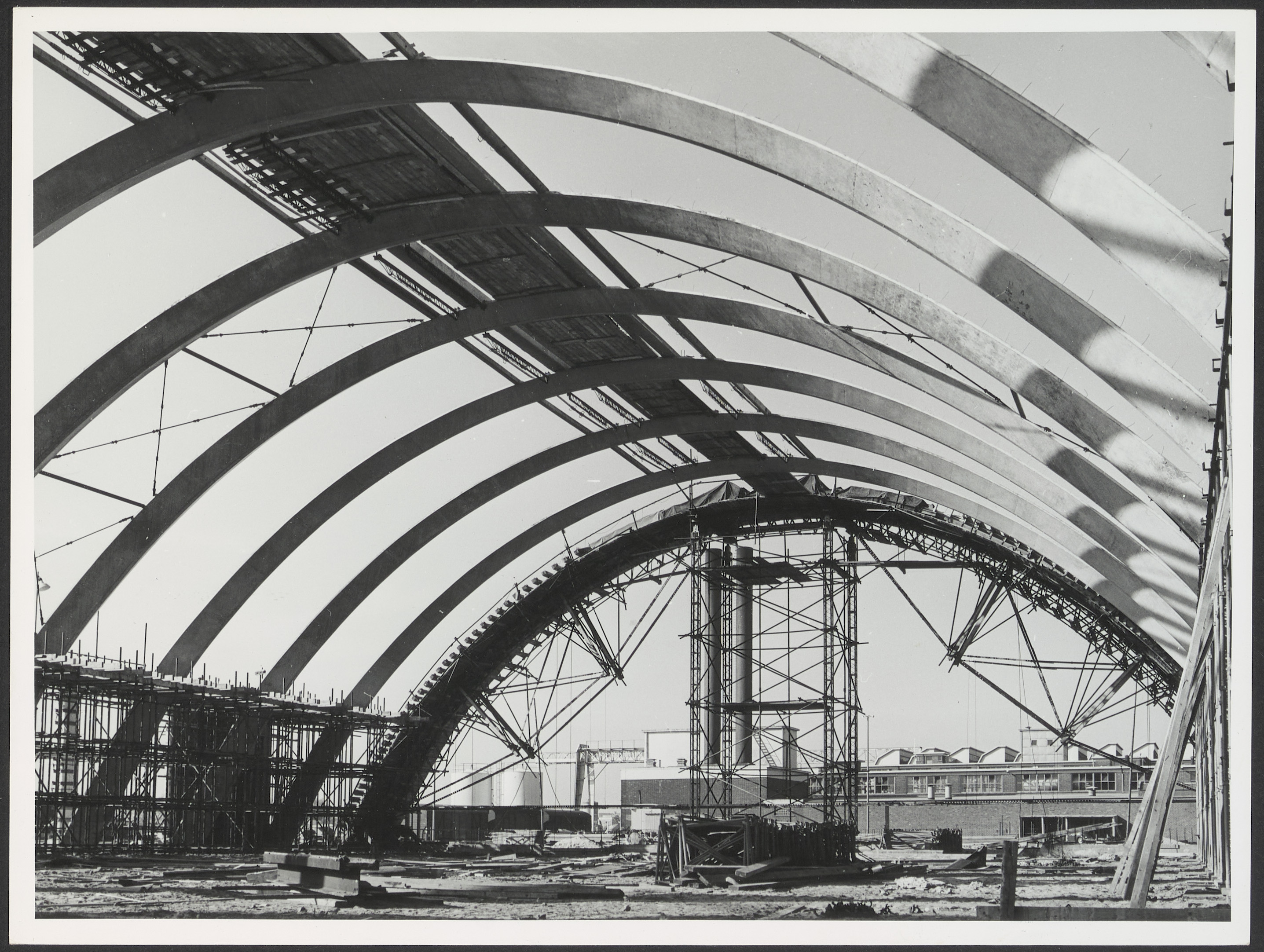 Bouw van de booghal nu in gebruik als centrale entree van de Brabanthallen aan de …