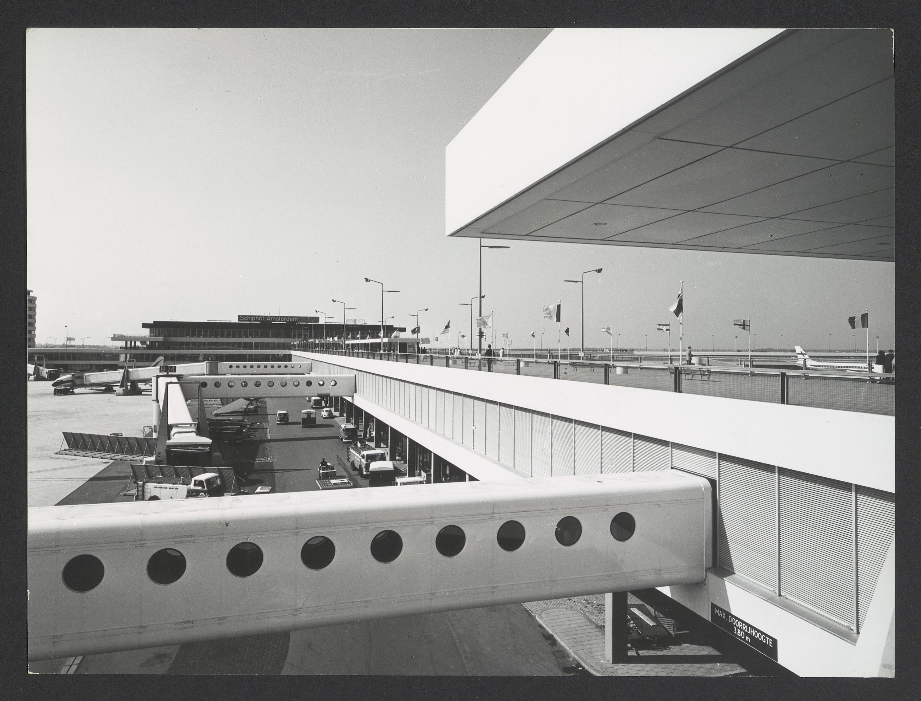 - De B-pier richting het stationsgebouw van luchthaven Schiphol.