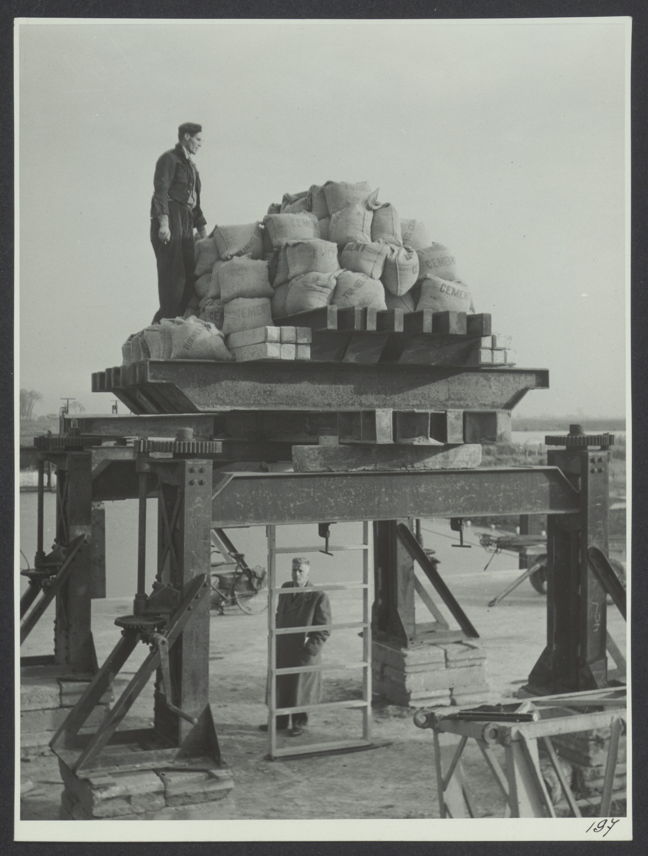 - Belastingproef van een betonnen raamwerk.op het bedrijfsterrein van Schokbeton aan de Haatlanderdijk in Kampen.