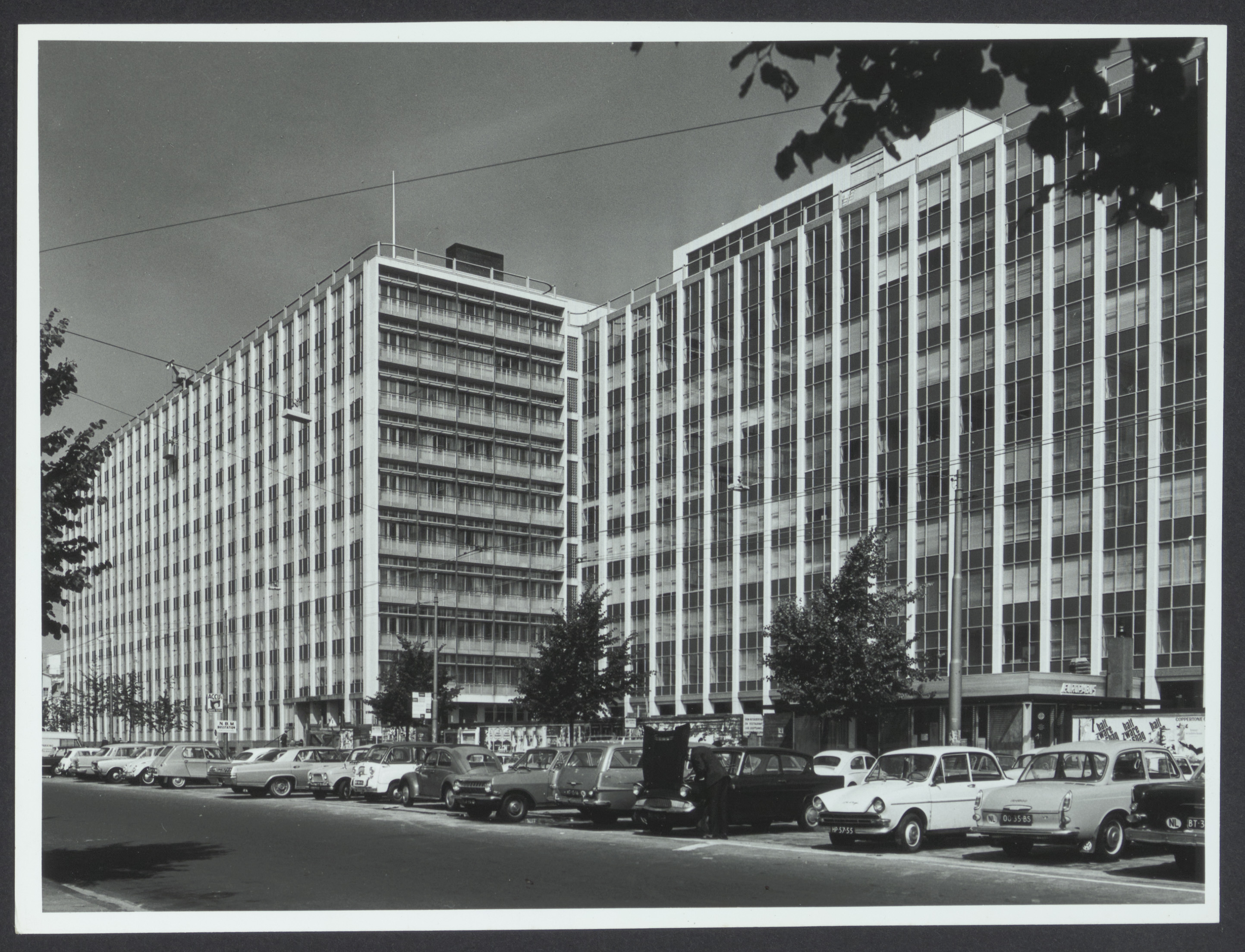 Kantoorgebouw Wibauthuis voor gemeentediensten aan het Rhijnspoorplein en de Wibautstraat in Amsterdam.