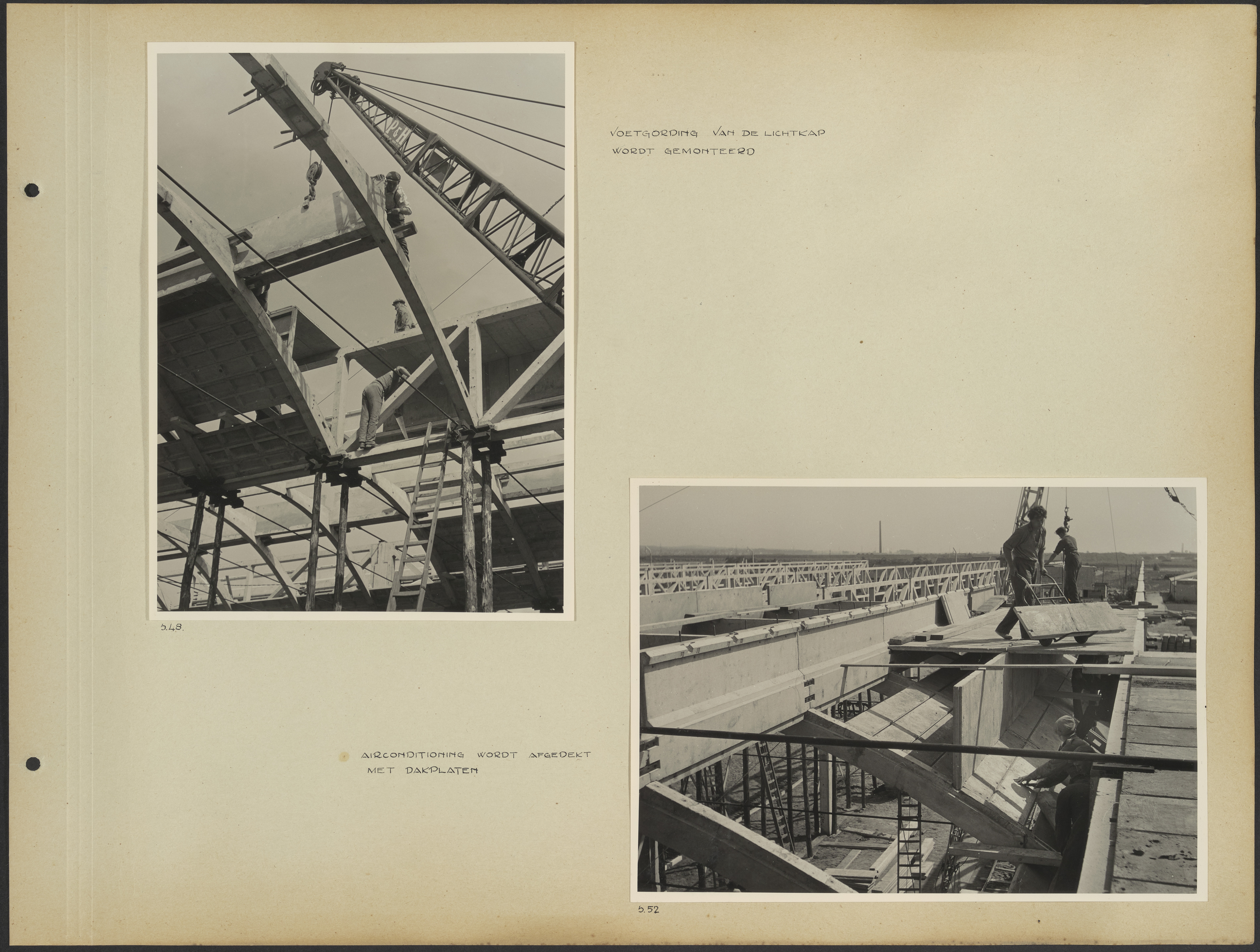 Bouw van de rayon-spinnerij van AKU aan de Westervoortsedijk in Arnhem.