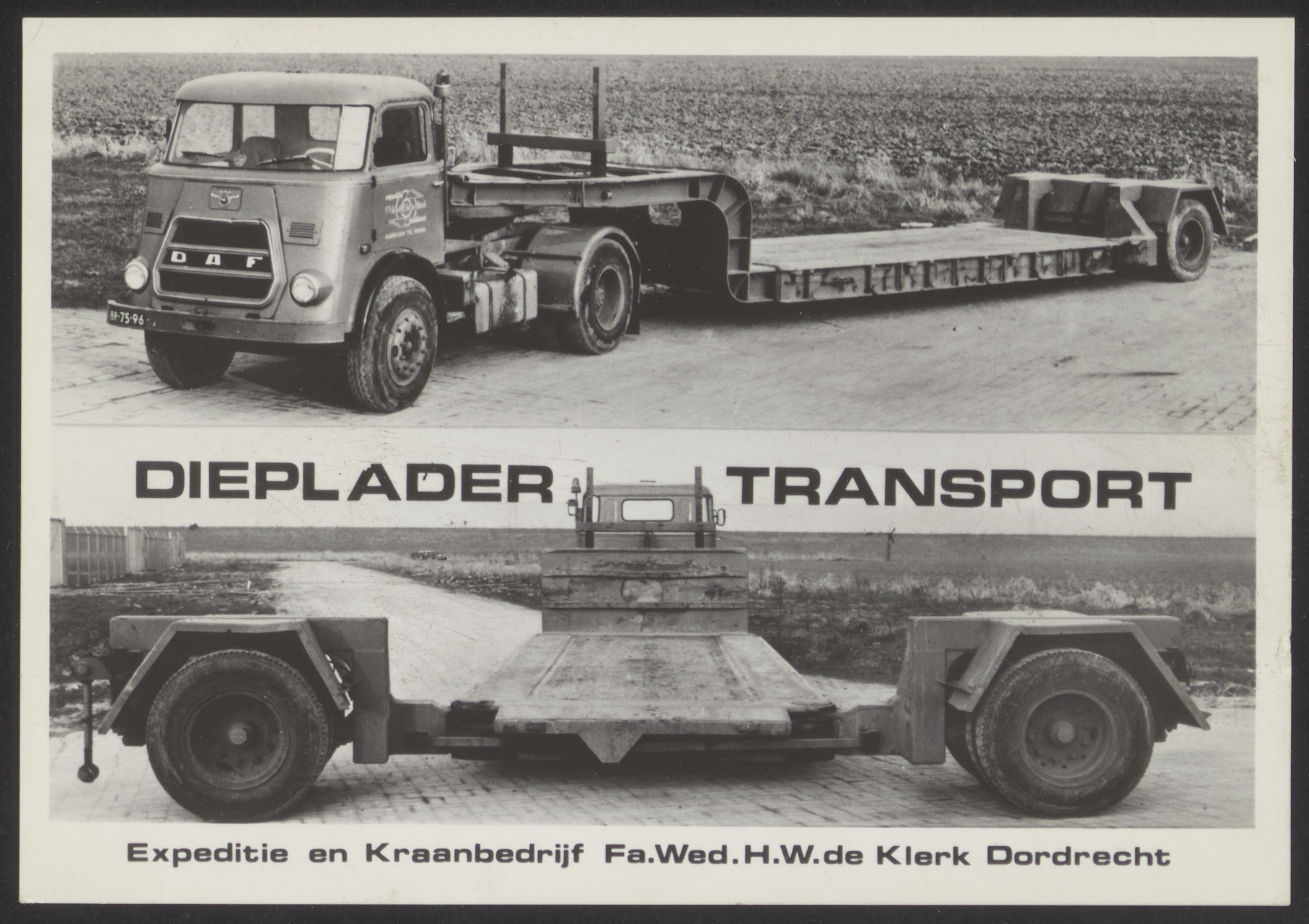 Du Parant heeft heel veel vrachtwagens gefotografeerd. In mijn boek “100 jaar TRANSPORT ROND DORDT” heb ik daar ook gebruik van kunnen maken. Op deze reclame ansichtkaart staat een dieplader combinatie van De Klerk. Deze opnames zijn gemaakt m.b.v. een statief in de kersverse omgeving Ploegstraat en Sikkelstraat. Volgens de chauffeur stond Du Parant hierbij op een huishoudtrap en een donkere doek over zijn hoofd.