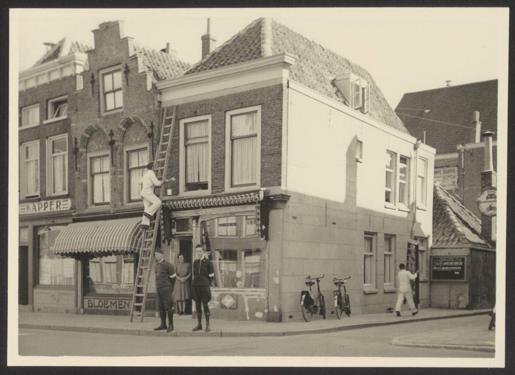 Hoekpand Bagijnhof 66 (nummer destijds, nu nr. 74) - Lenghenstraat, de fotowinkel van Du Parant tijdens de oorlogsjaren. Hun oude winkel op de hoek Singel - Beverwijckstraat was in de meidagen van 1940 kapot geschoten / afgebrand en is pas na de oorlog herbouwd. In de deuropening mevrouw Du Parant, geboren Louise Christina Margaretha Smit.