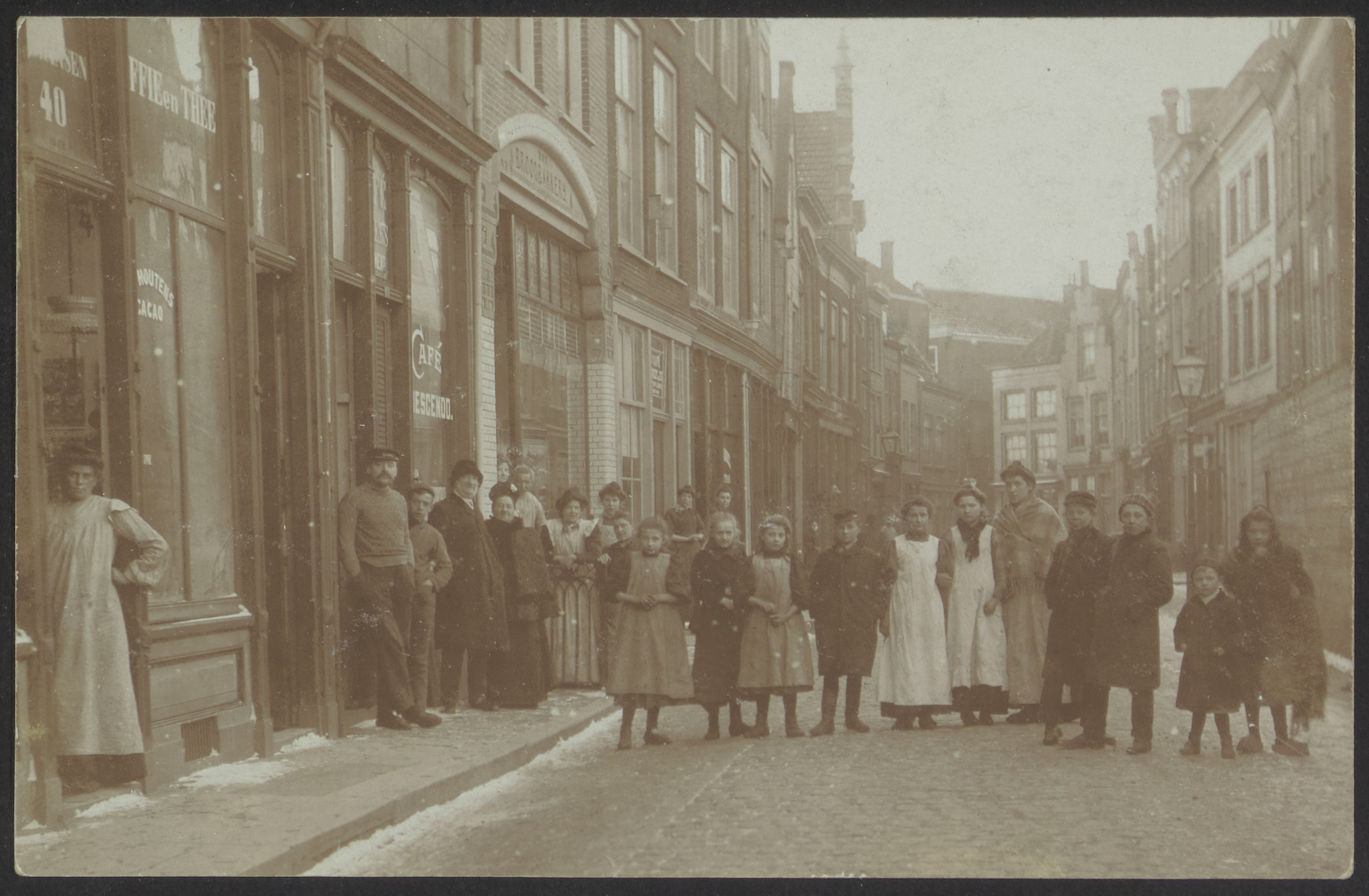 Riedijk richting de Voorstraat met links nr. 40 kruidenier Fransen, op 42 café Crescendo en op 44 de bakkerij van Zoutewelle. Nr 44 is nu huisnummer 80.