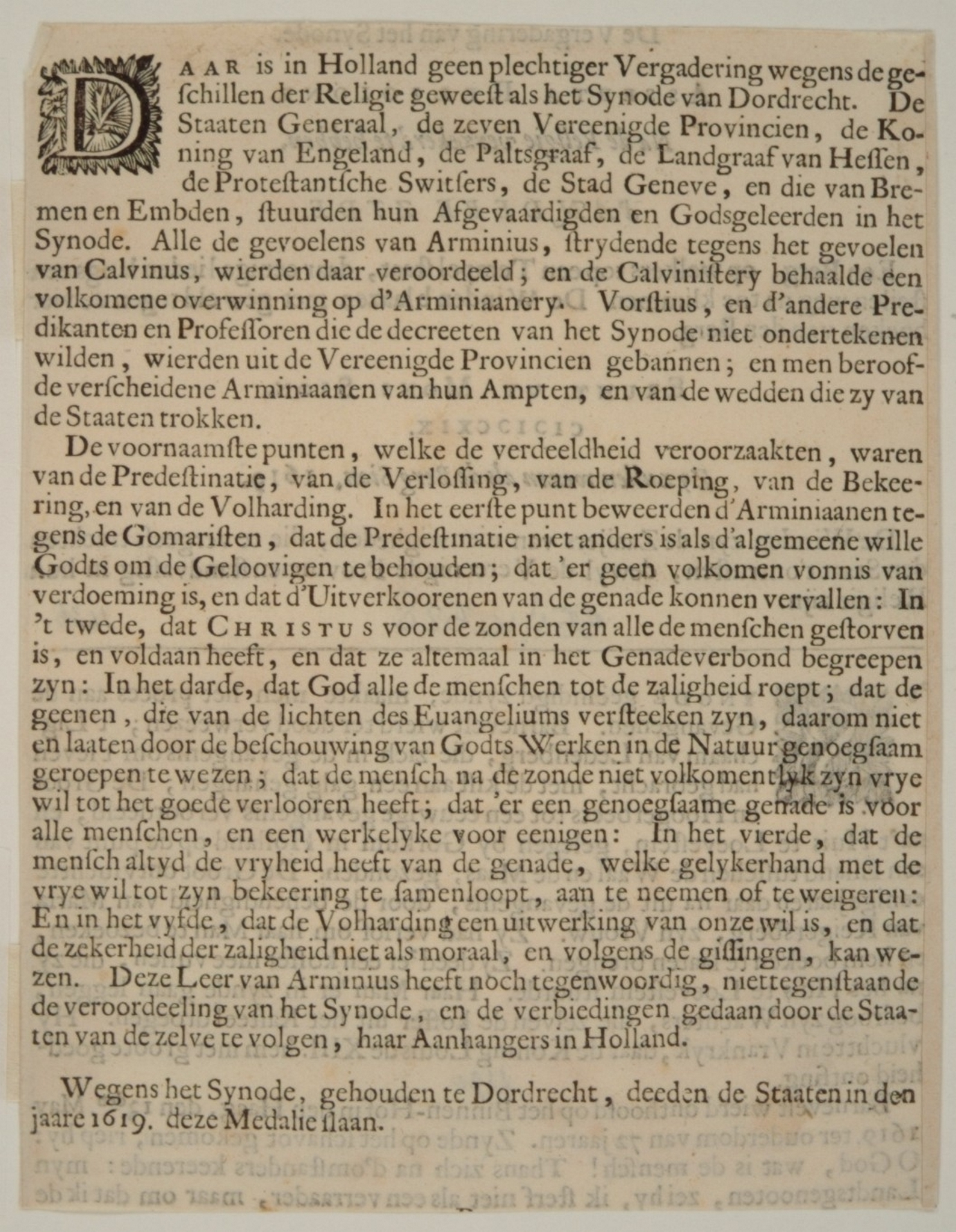 Bijschrift bij een penning ter herinnering van de Nationale Synode te Dordrecht