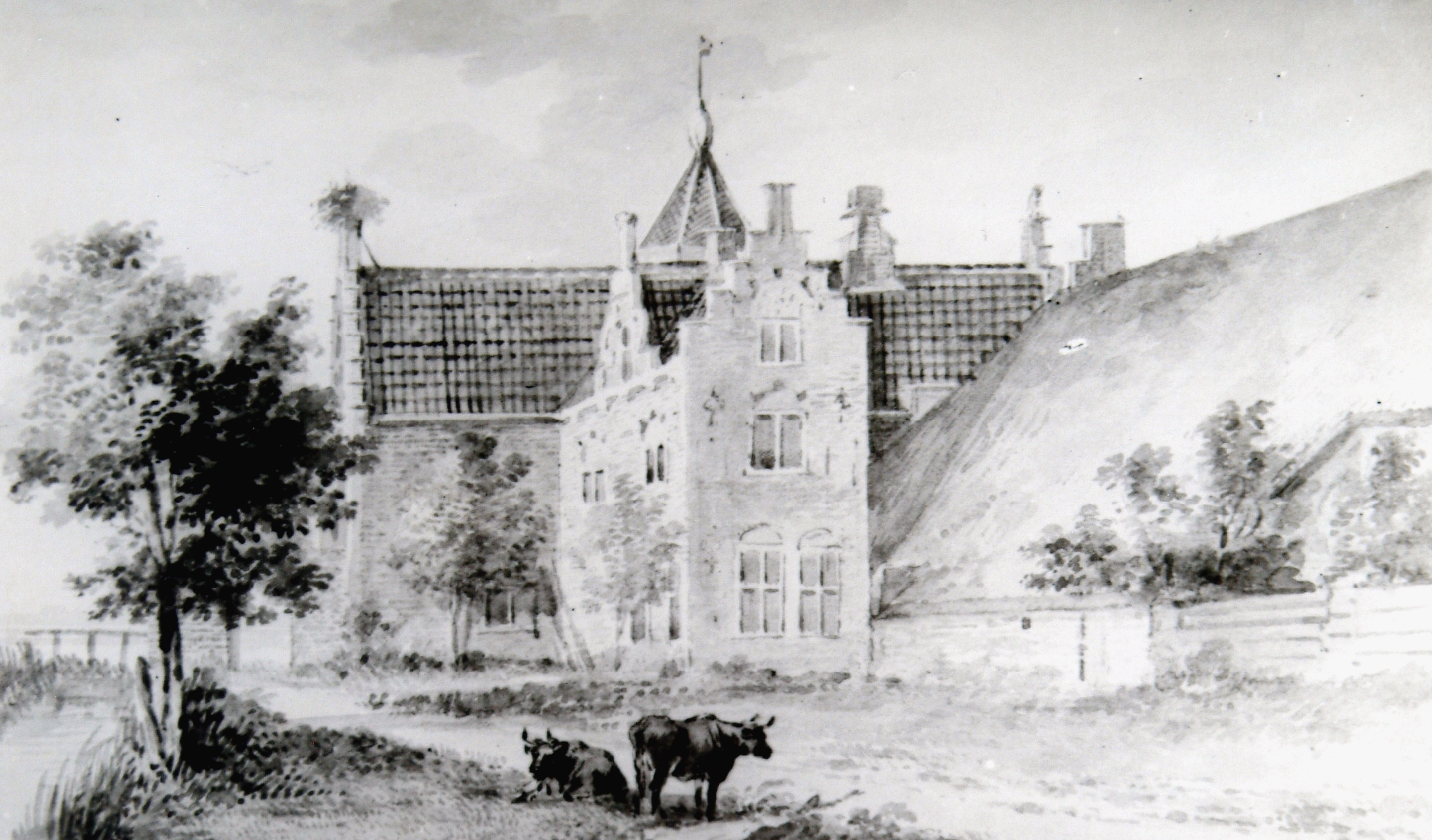 Crabbehof aan de achterzijde gezien, naar tekening in kleur van A. Schouman, 1746