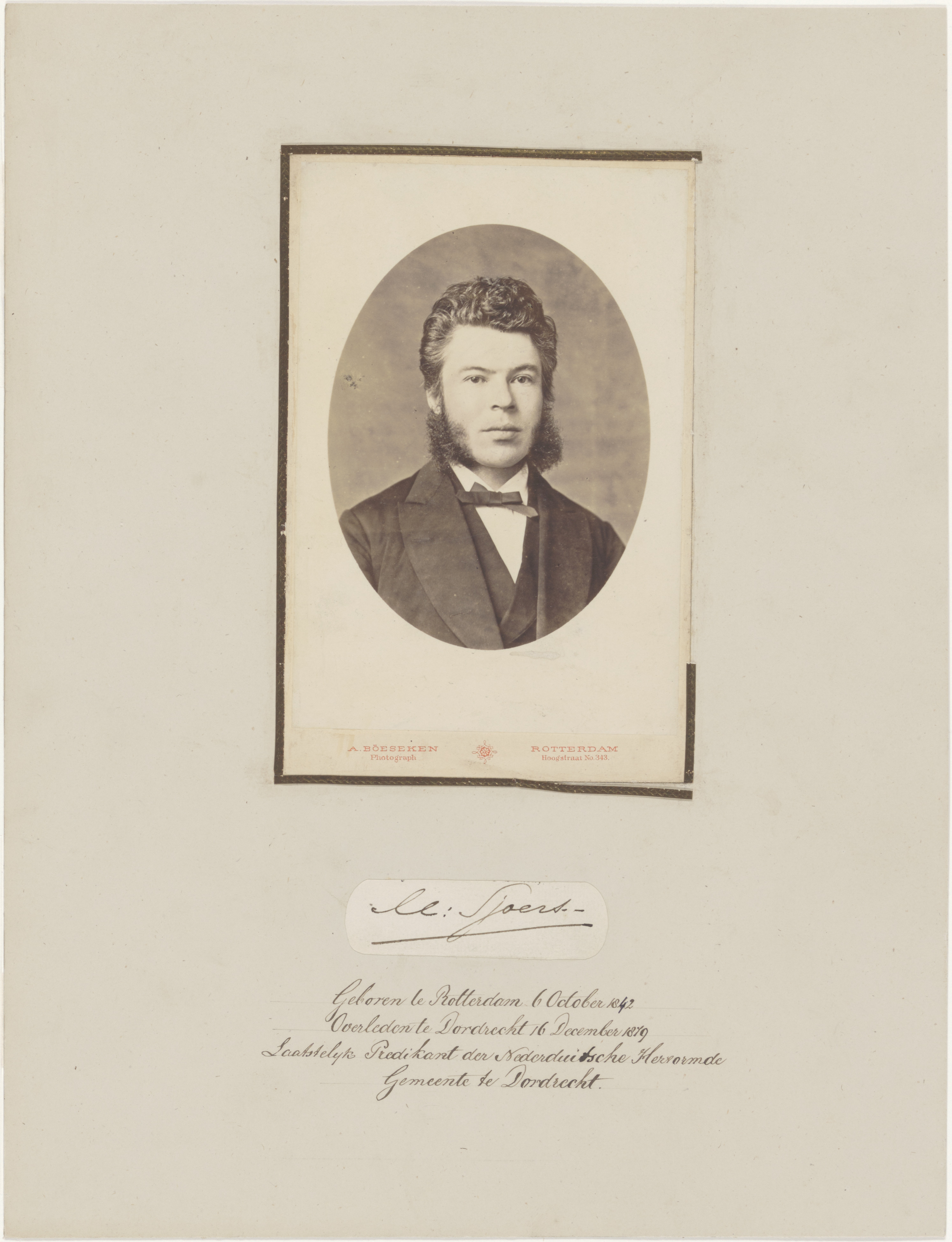 Ds. Melchior Sjoers. Geboren te Rotterdam 16 oktober 1842, overleden te Dordrecht 16 …