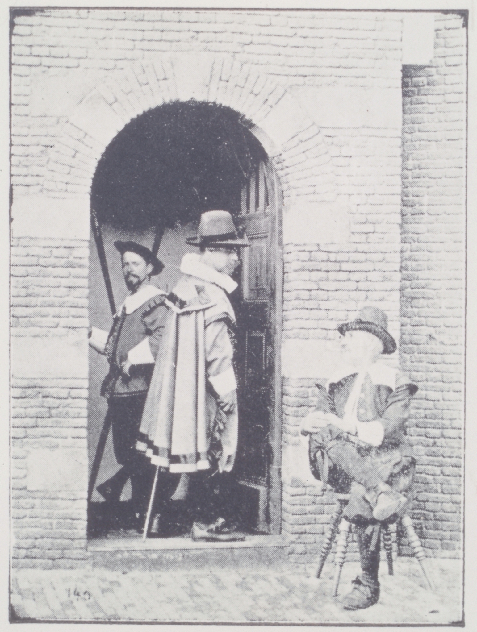 Vóór het burgemeestershuis in het tentoonstellingsdorp Oud-Dordt, tijdens Vak en Kunst …