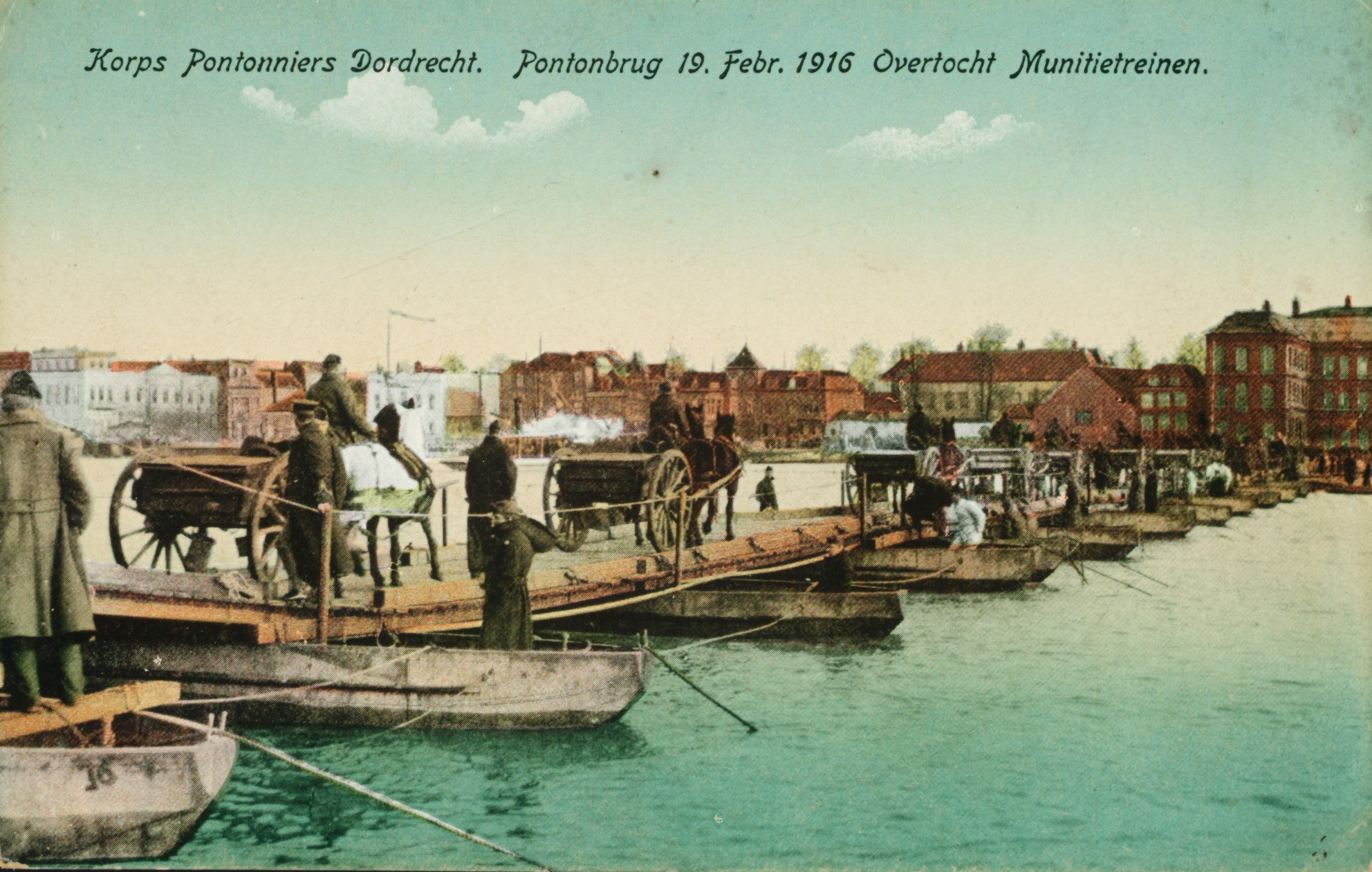 - Korps Pontonniers Dordrecht, Pontonbrug op 19 februari 1916. Overtocht munitietreinen.