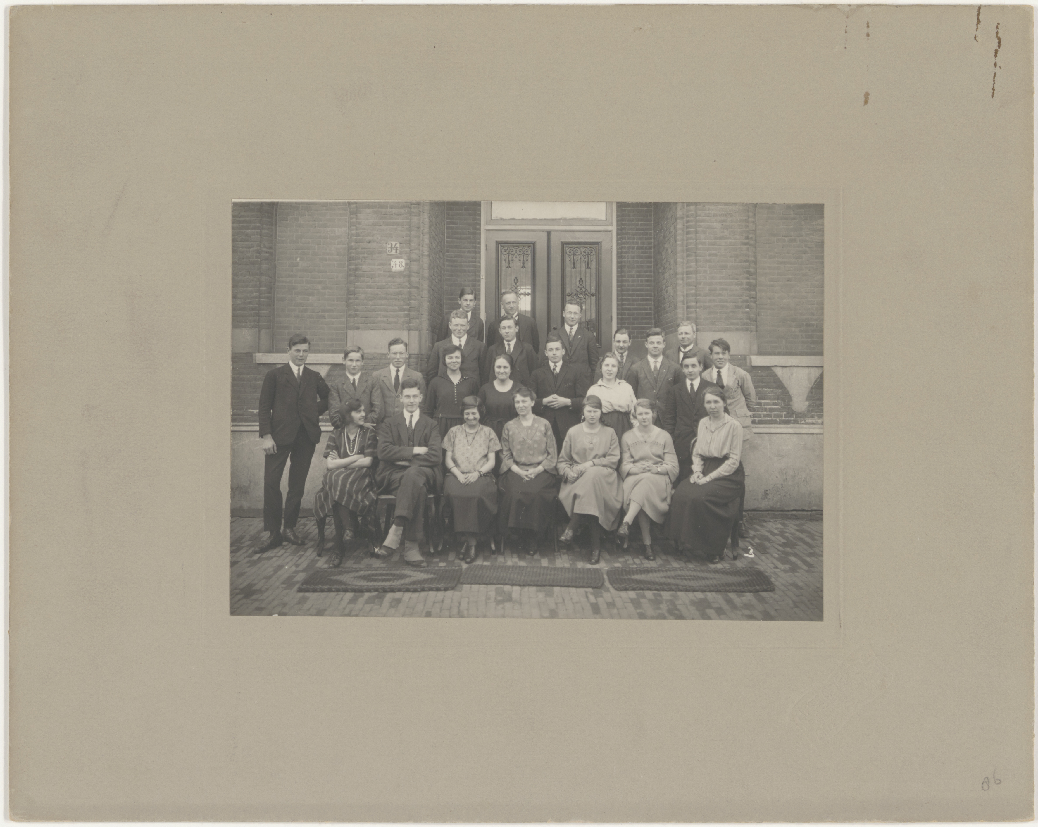 - Leerlingen van de hoogste drie klassen van het Gymnasium, met rector en leraren voor hun school in de Cornelis de Wittstraat.