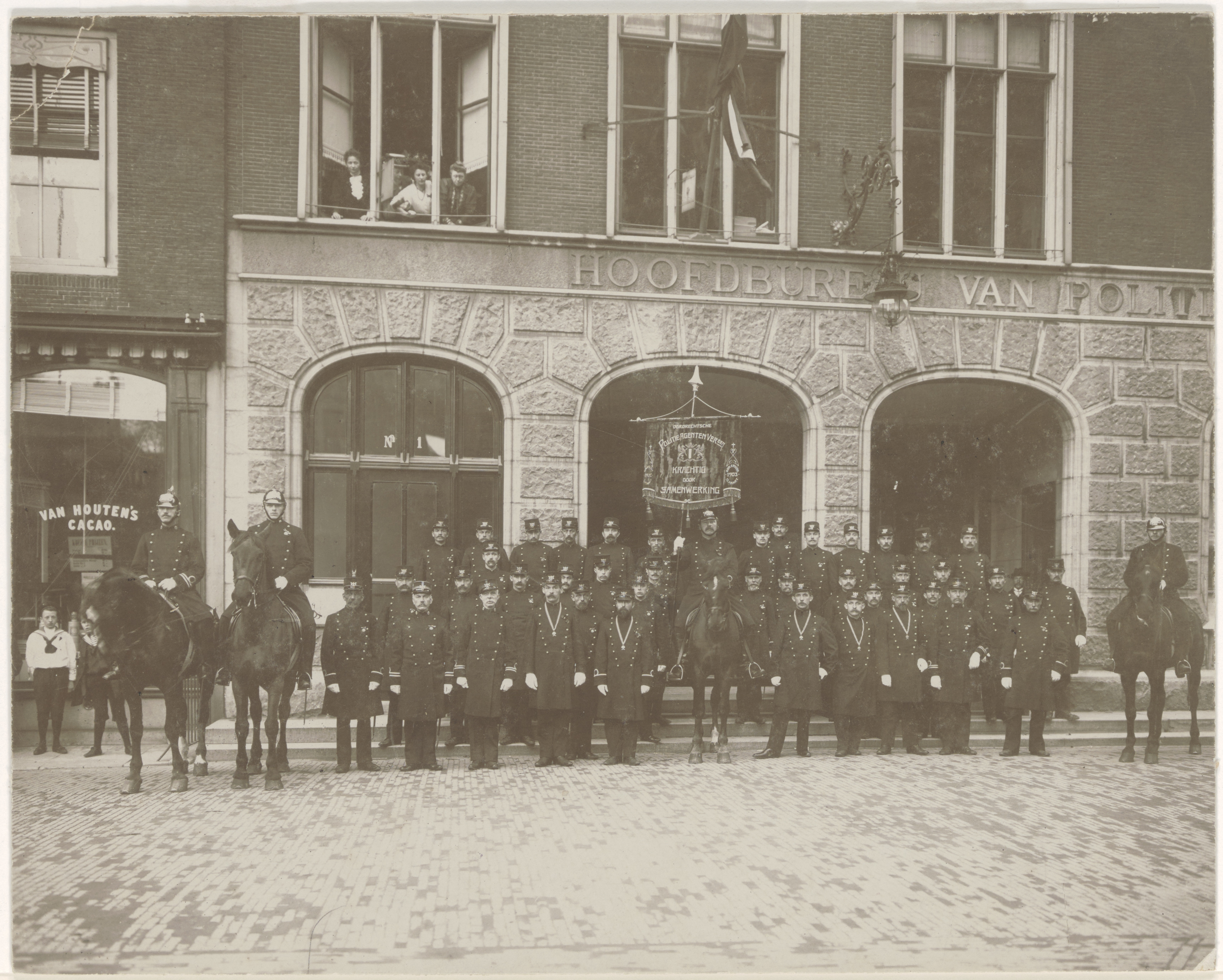 - Politievereniging "Kracht door Samenwerking" opgesteld voor het hoofdbureau van politie aan de Groenmarkt.