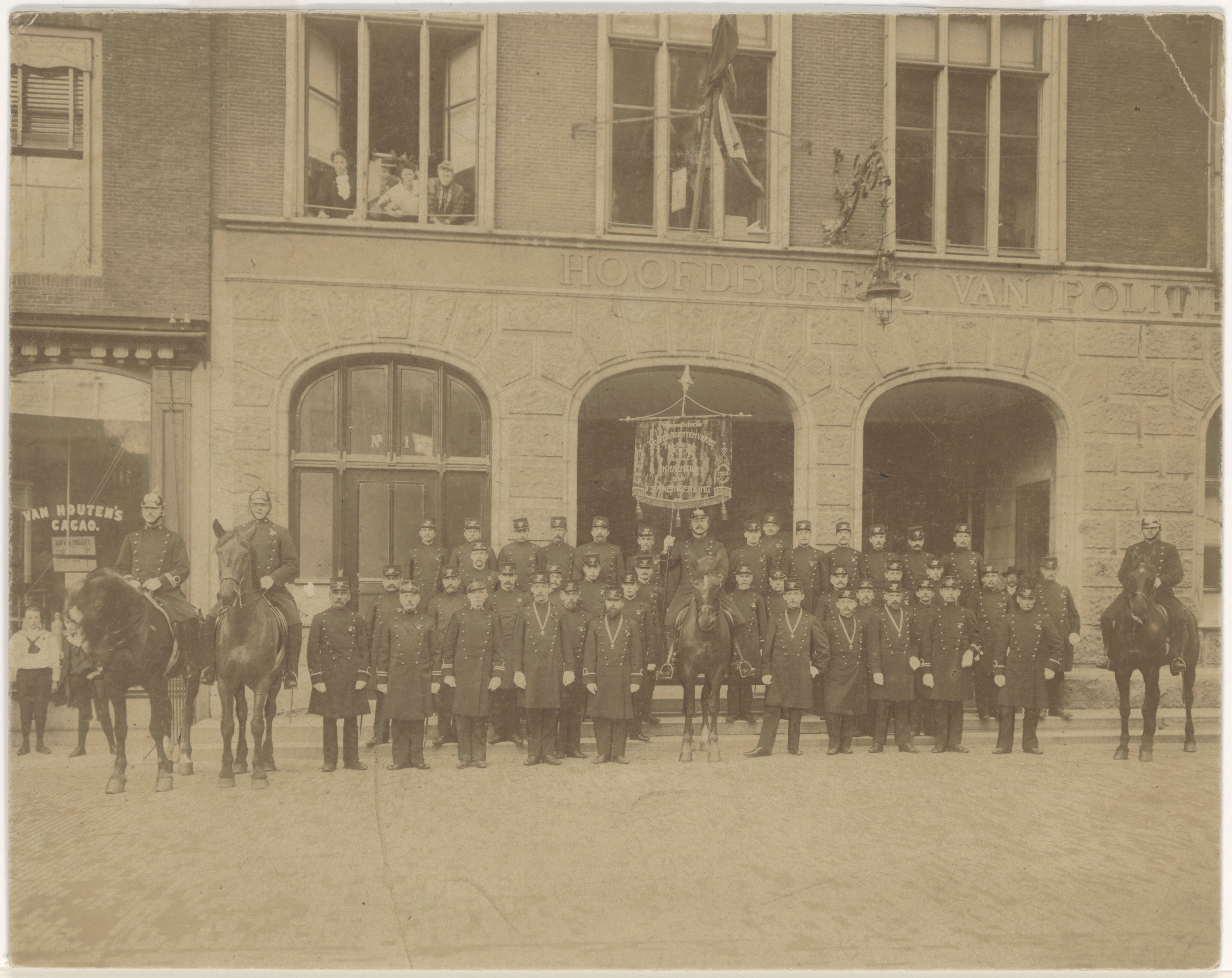 - Politievereniging "Kracht door Samenwerking" opgesteld voor het hoofdbureau van politie aan de Groenmarkt.