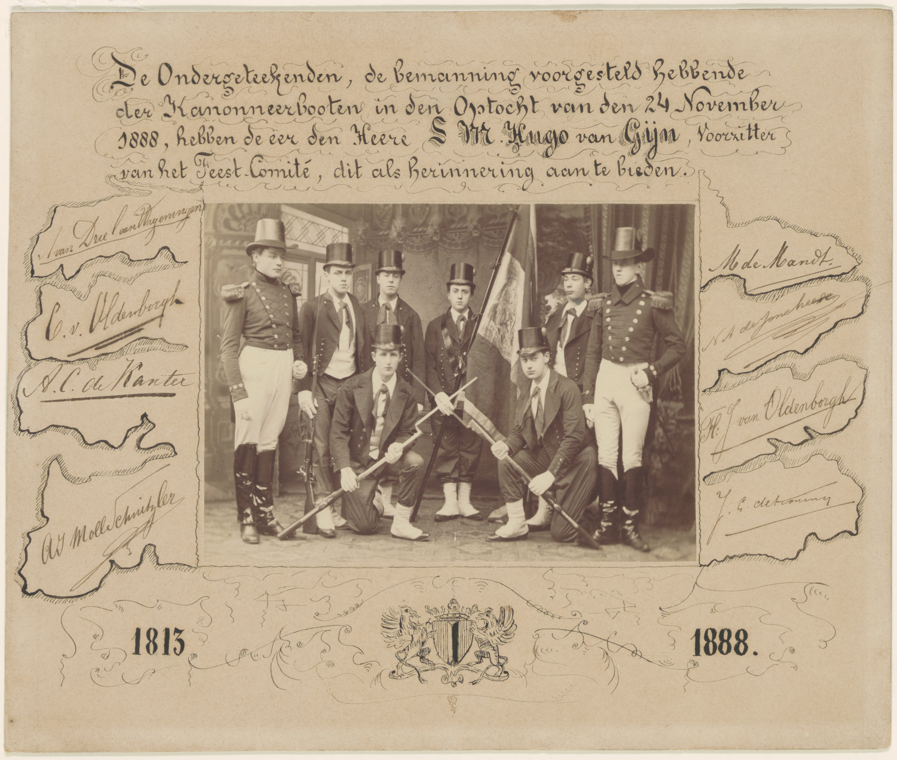 Leden van D.F.C. als bemanning van de kanonneerboot in een optocht.