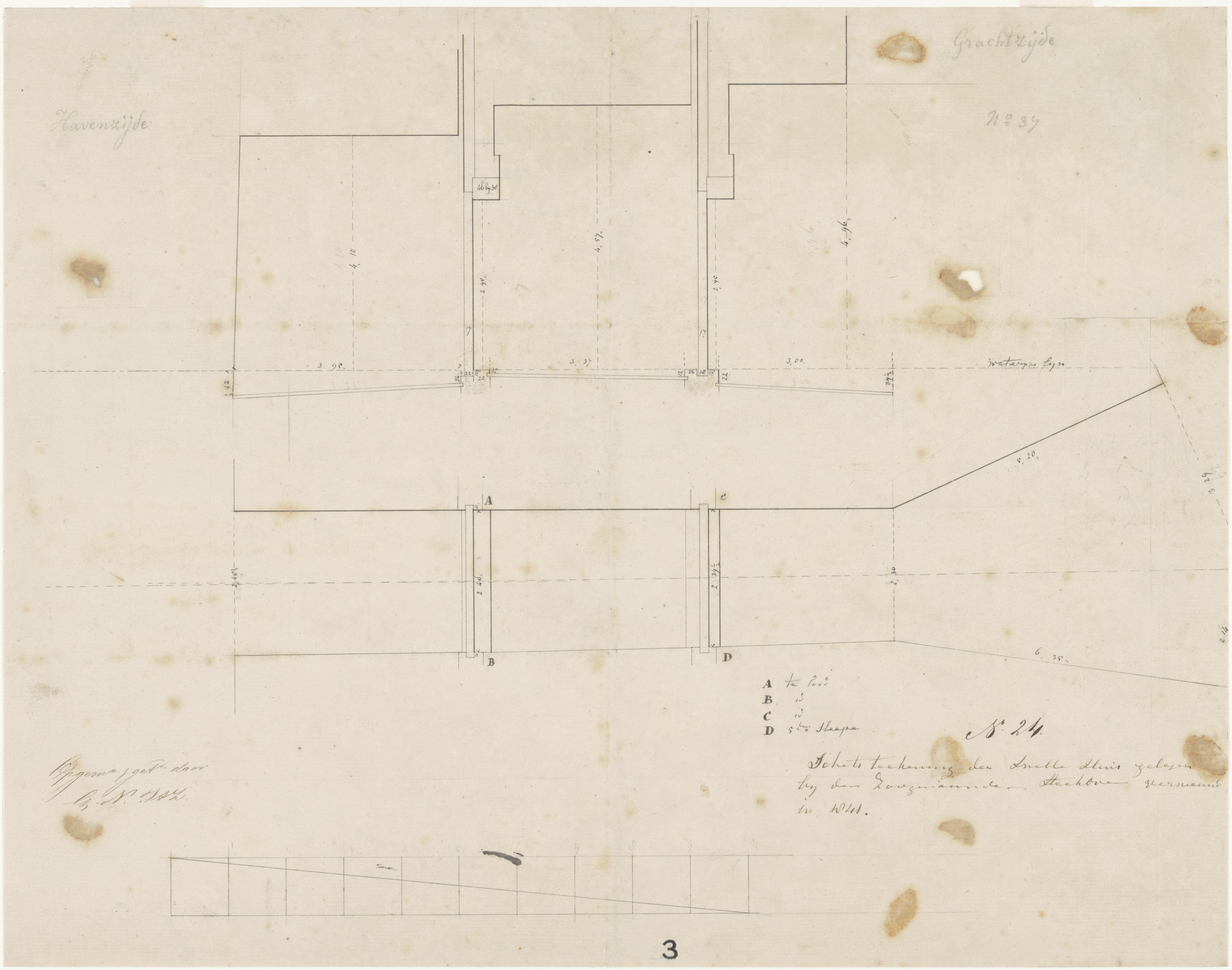 Doorsnede en plattegrond van de zgn. Snelle Sluis.