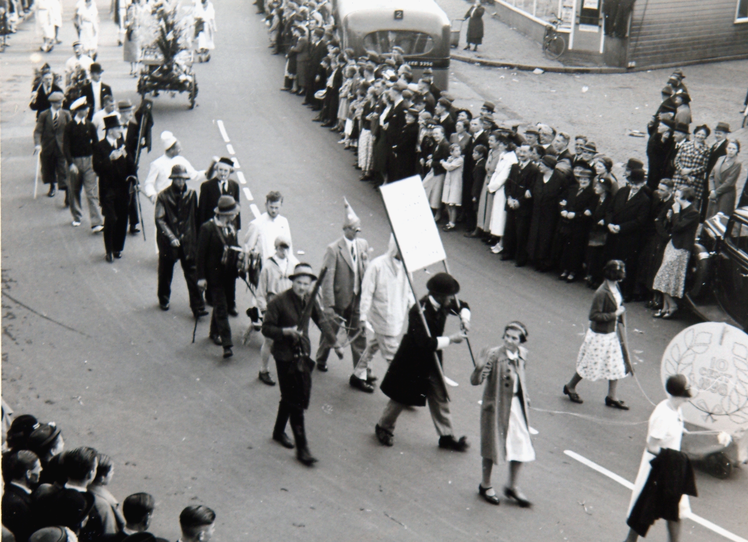 Spreekwoordenoptocht. Men loopt vanuit de Johan de Wittstraat langs het Achterom …